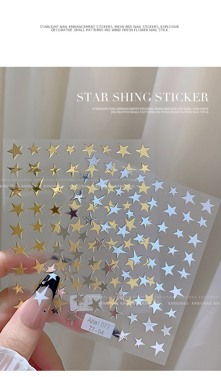 스타 매니큐어 스티커 인터넷 인기 골드 및 실버 스타 블랙 및 화이트 네일 스티커