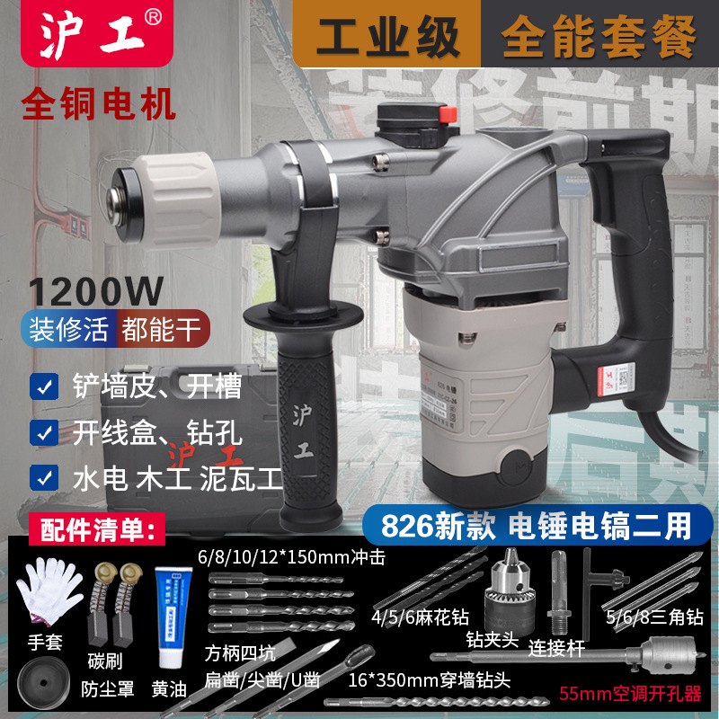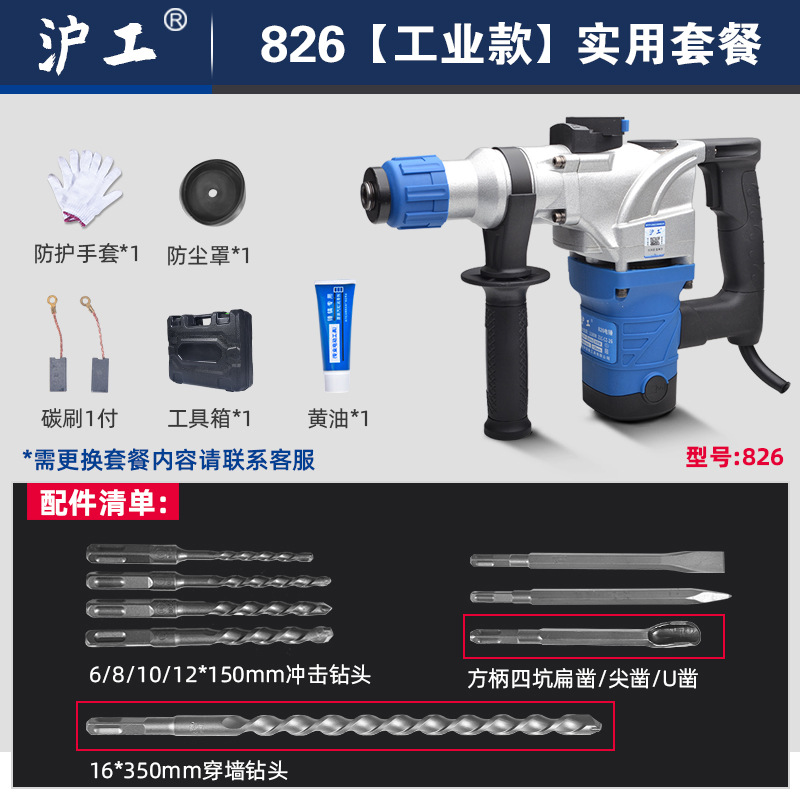 • 산업용 모델 826(1180W) 다목적 패키지, 전기 해머 및 픽(클러치 없음)