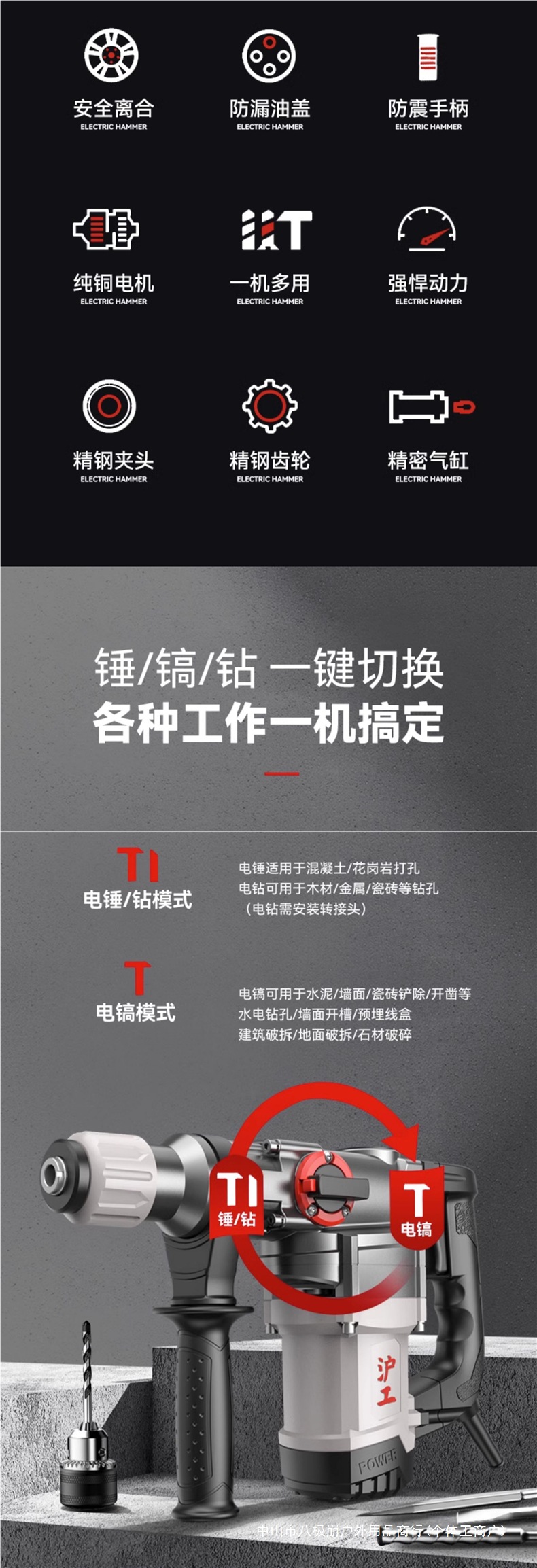상하이 산업 전기 망치 전기 선택 산업 무거운 콘크리트 고출력 전기 충격 드릴 가정용 다기능 상하이 산업 8 극