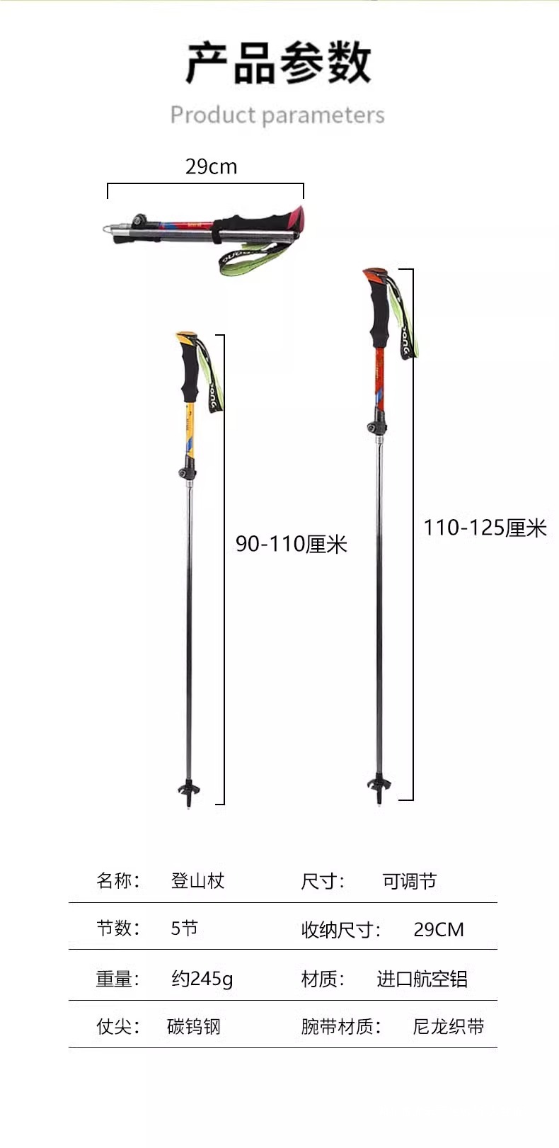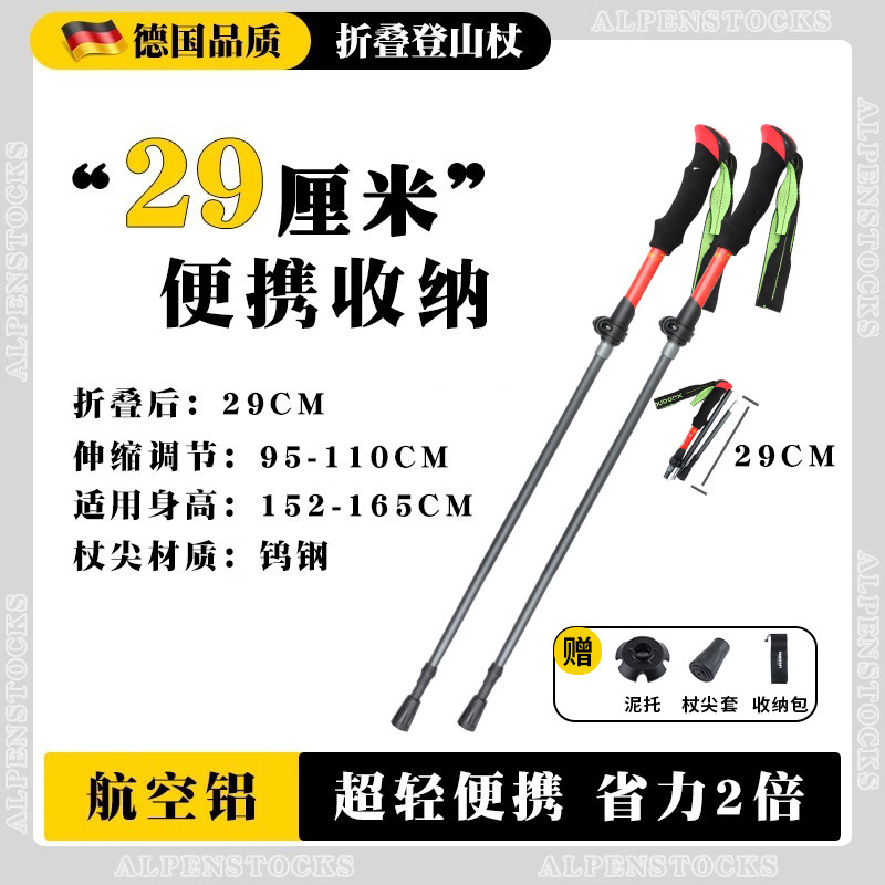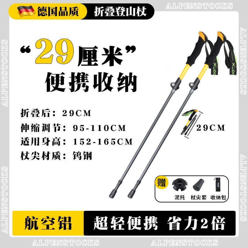 Yumi 전문 야외 접이식 하이킹 스틱 하이킹 텔레스코픽 카본 프리 스틱 남성용 및 여성용 등산 장비