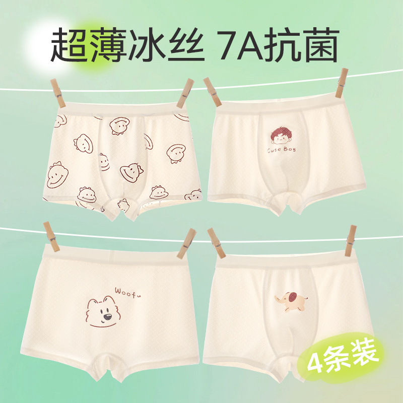 7A 어린이 속옷 여름 얇은 소년 얼음 실크 복서 반바지 중형 및 대형 어린이 소년 복서 반바지스토어 가기
