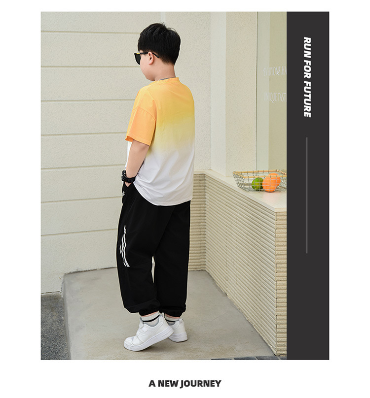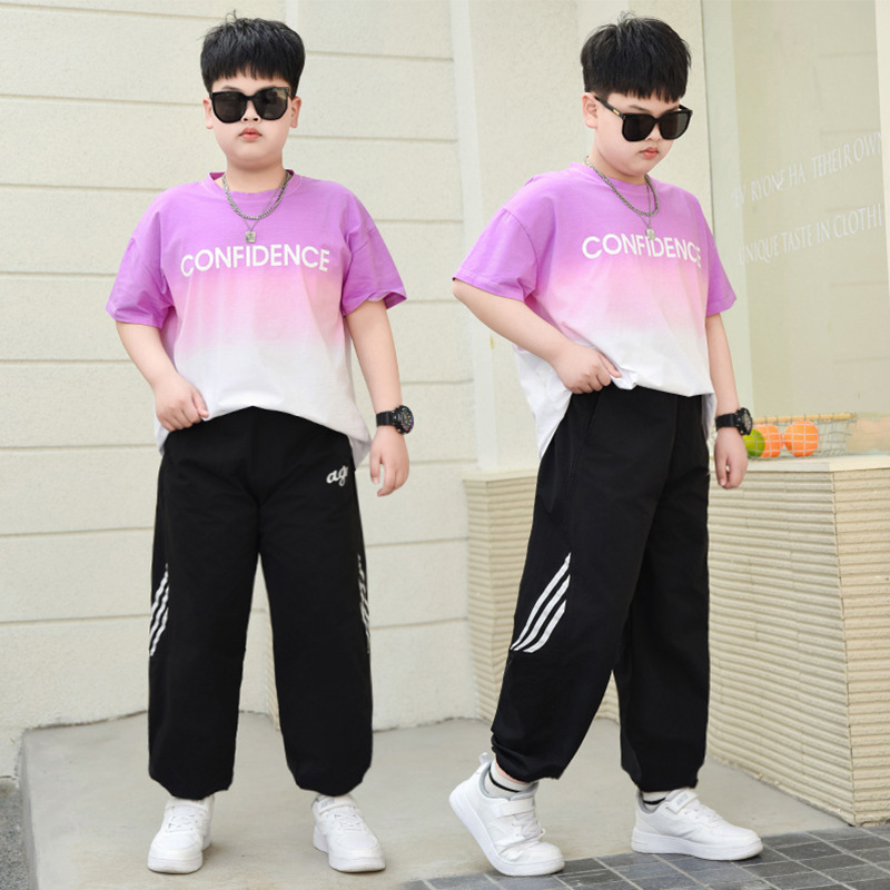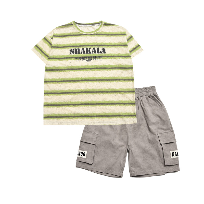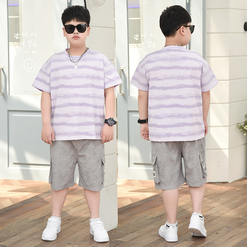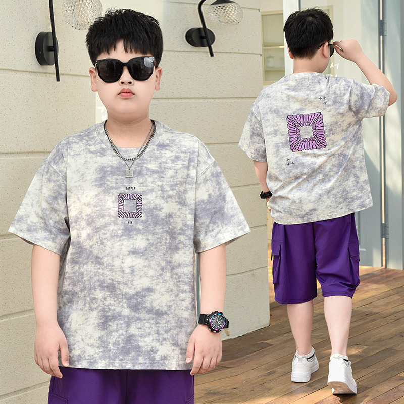 남자들의 여름 반팔 세트 2025 새로운 중대형 소년 여름 캐주얼 느슨한 투피스 트렌디 쿨