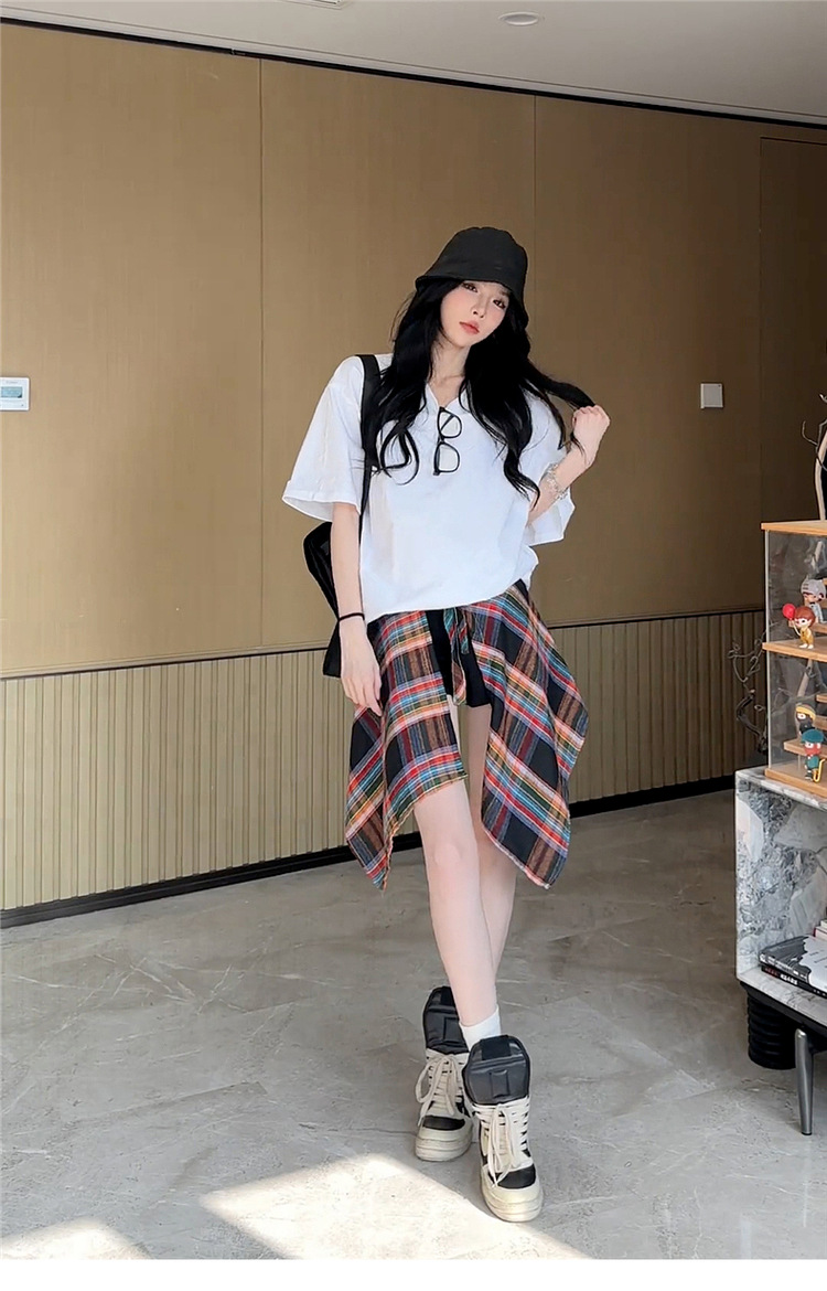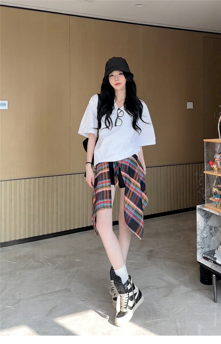 • [화이트] [스몰/아메리칸탑/틈새비충돌탑/2025유럽상품/티셔츠/어깨가 예쁜티셔츠/시크]