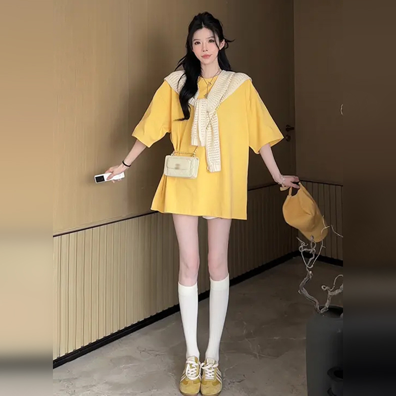 • [노란색] [약간 뚱뚱한 스타일의 상의/틈새 기질이 대비되지 않는 스타일/슬림/슬림/반팔 루즈하고 나른한 스타일/이너웨어/아름답고 아름답습니다/아름답습니다/순수한 욕망/