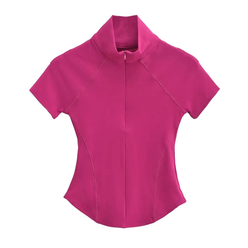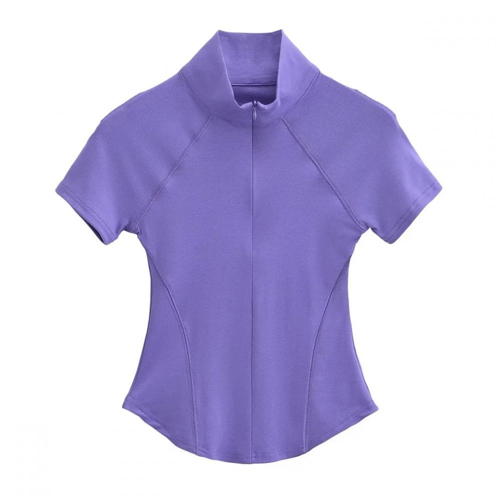 Pure Desire Hot Girl 폴로 칼라 타이트 티셔츠 여성 요가 라글란 반팔 하프 지퍼 바닥 탑 짧은 피트니스웨어스토어 가기