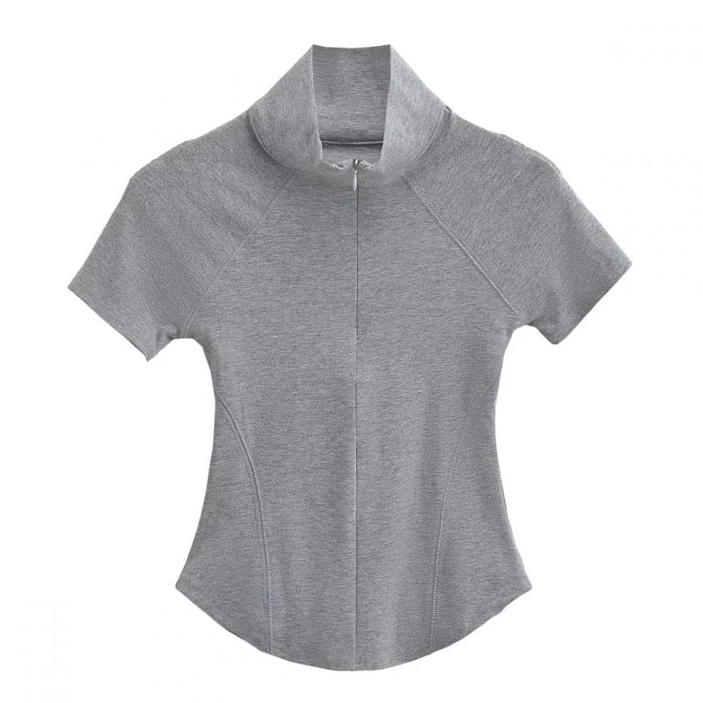 Pure Desire Hot Girl 폴로 칼라 타이트 티셔츠 여성 요가 라글란 반팔 하프 지퍼 바닥 탑 짧은 피트니스웨어
