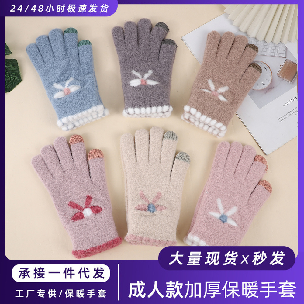 터치 스크린 활 니트 장갑 여성의 가을과 겨울 양모 새로운 따뜻한 다섯 손가락 귀여운 학생 사이클링 장갑스토어 가기