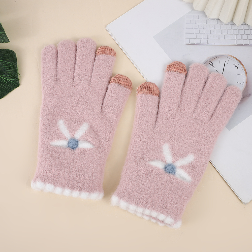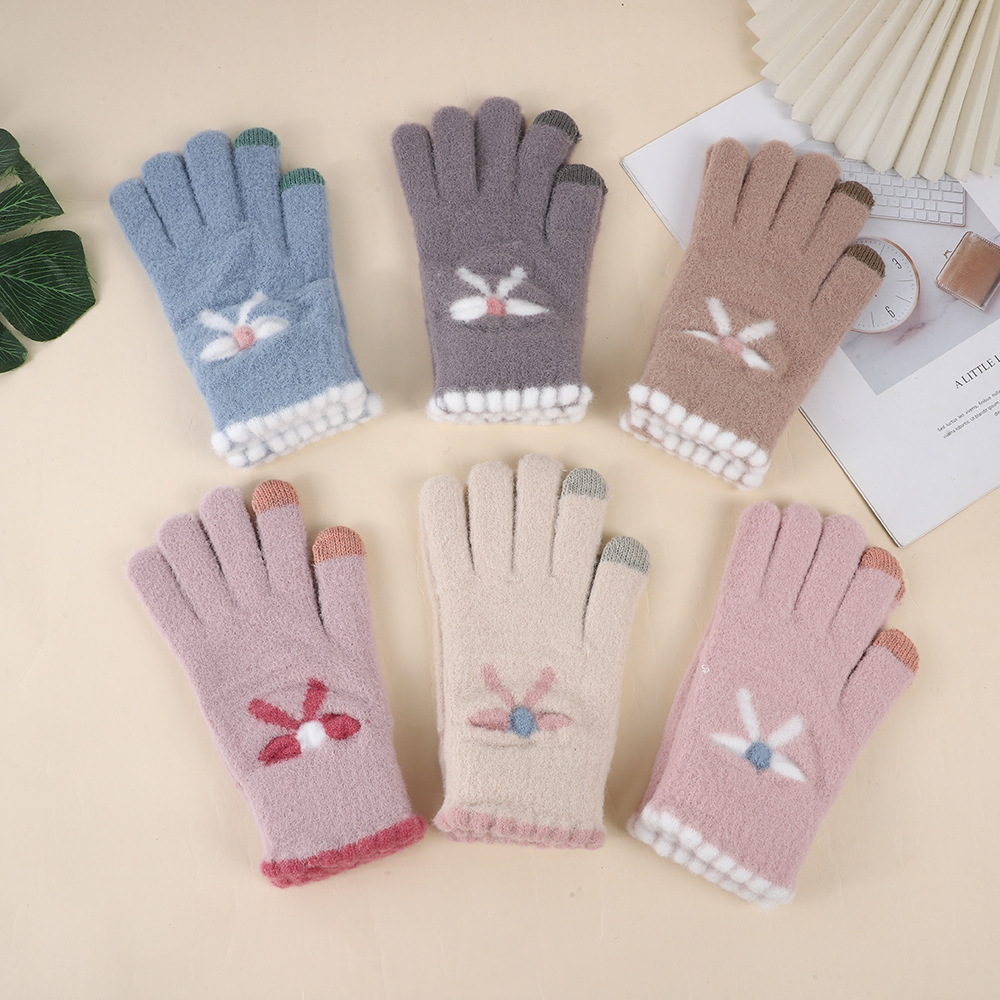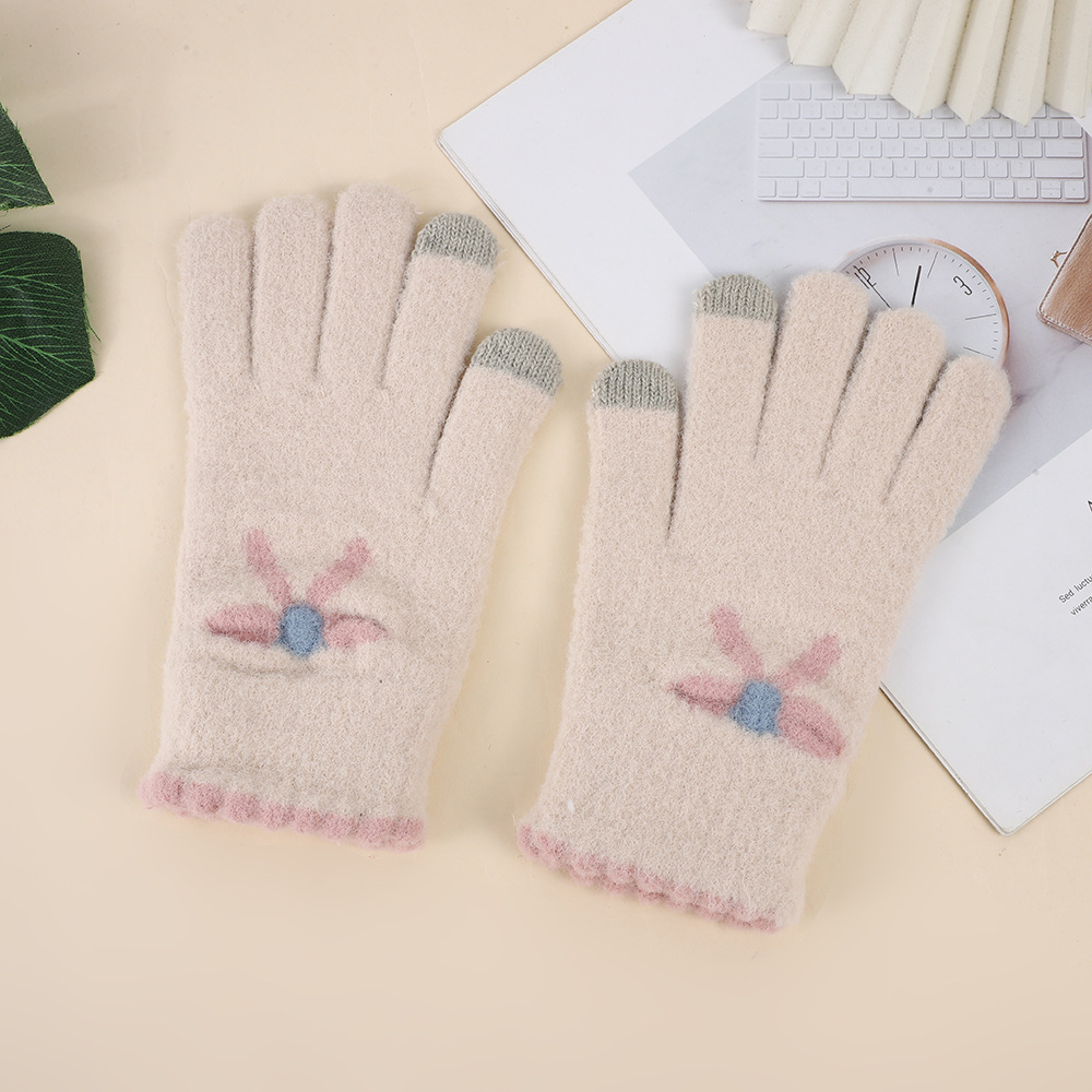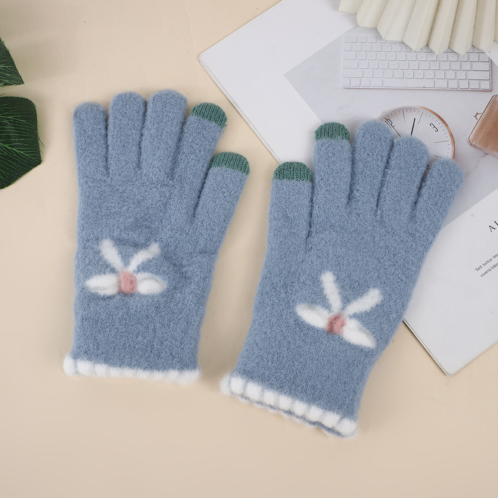 터치 스크린 활 니트 장갑 여성의 가을과 겨울 양모 새로운 따뜻한 다섯 손가락 귀여운 학생 사이클링 장갑