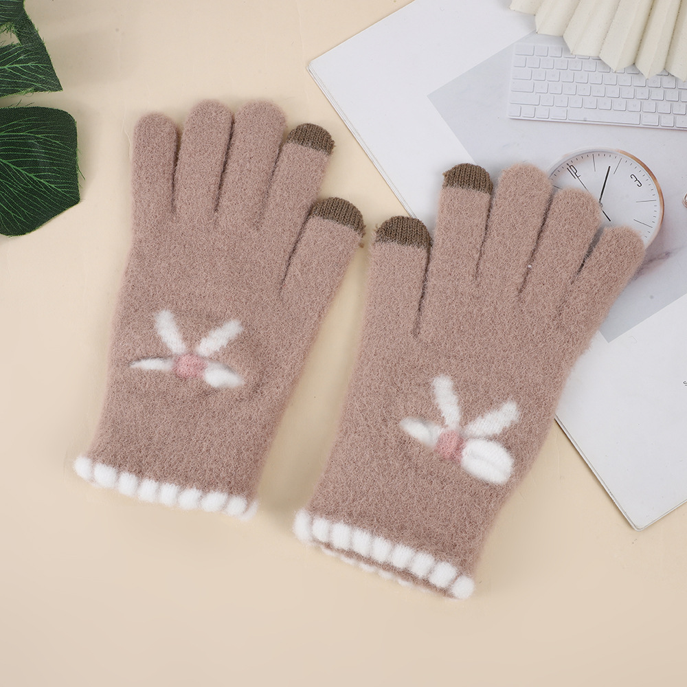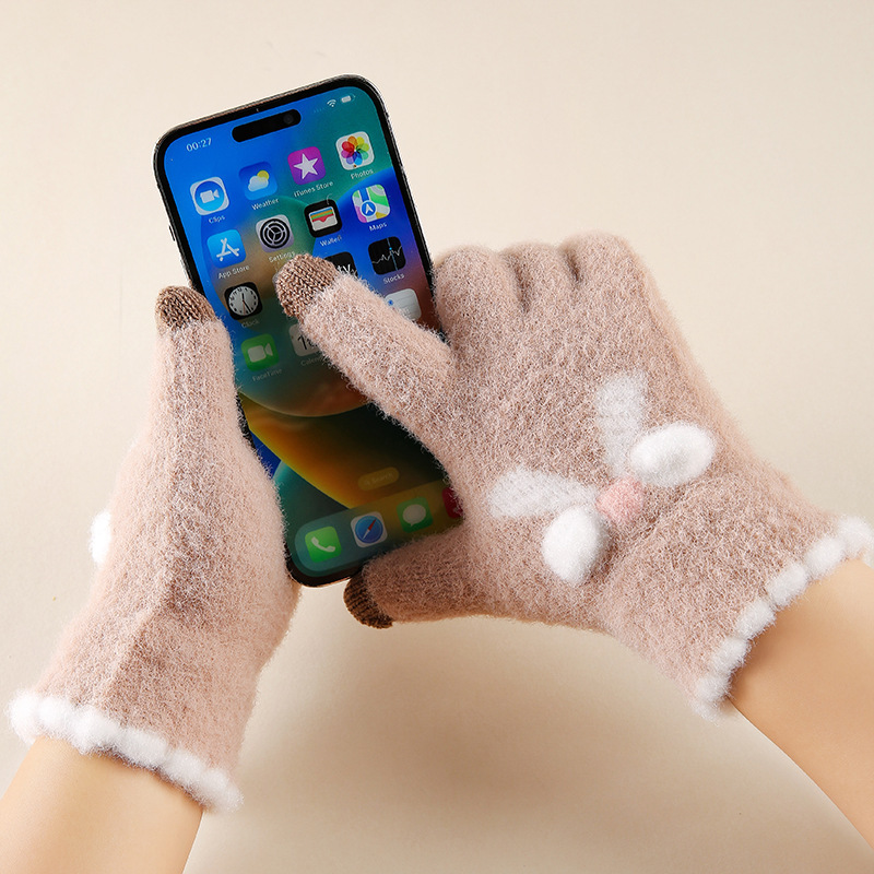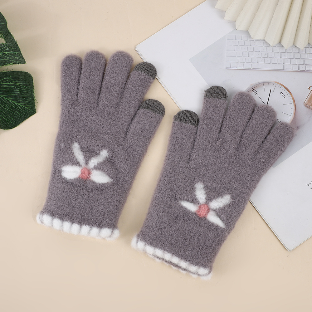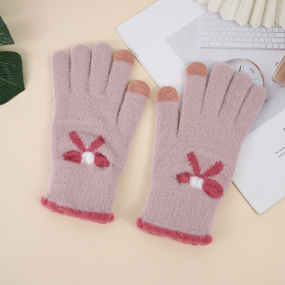 터치 스크린 활 니트 장갑 여성의 가을과 겨울 양모 새로운 따뜻한 다섯 손가락 귀여운 학생 사이클링 장갑