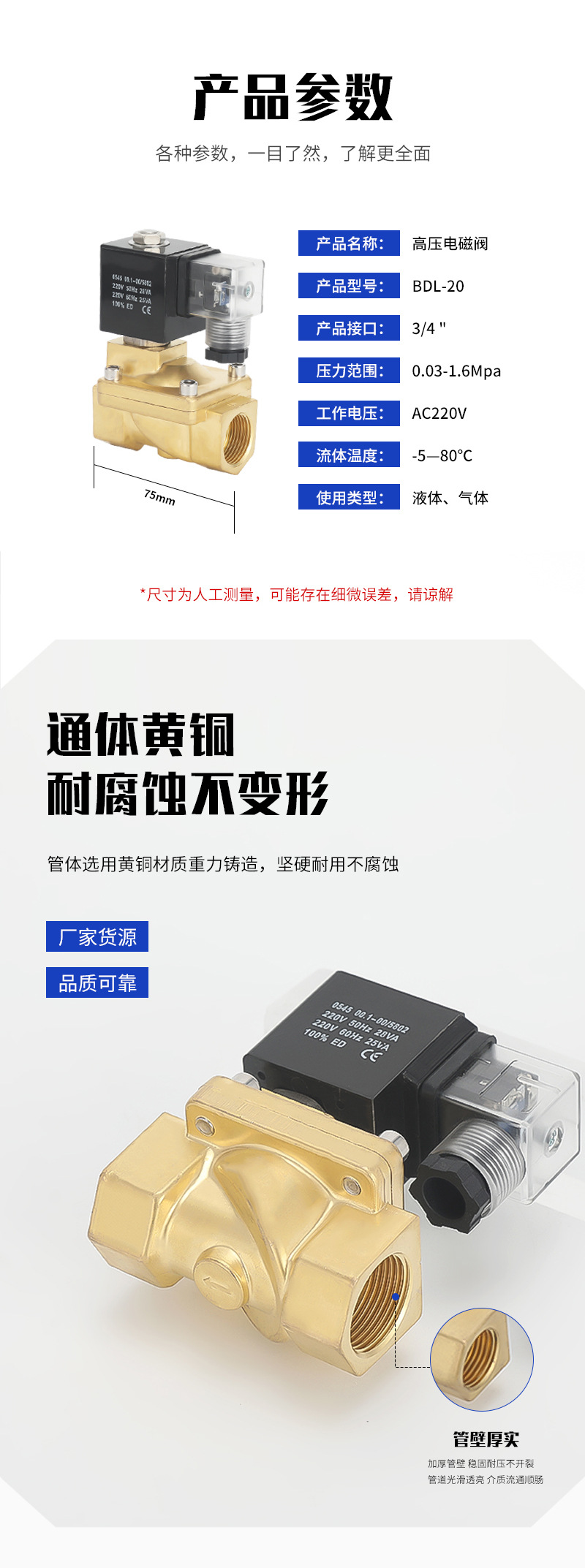 Baodaling 파일럿 유도 고압 BDL-SLP-20 가스 액체 황동 나사형 평상시 닫힘 제어 밸브 솔레노이드 밸브스토어 가기