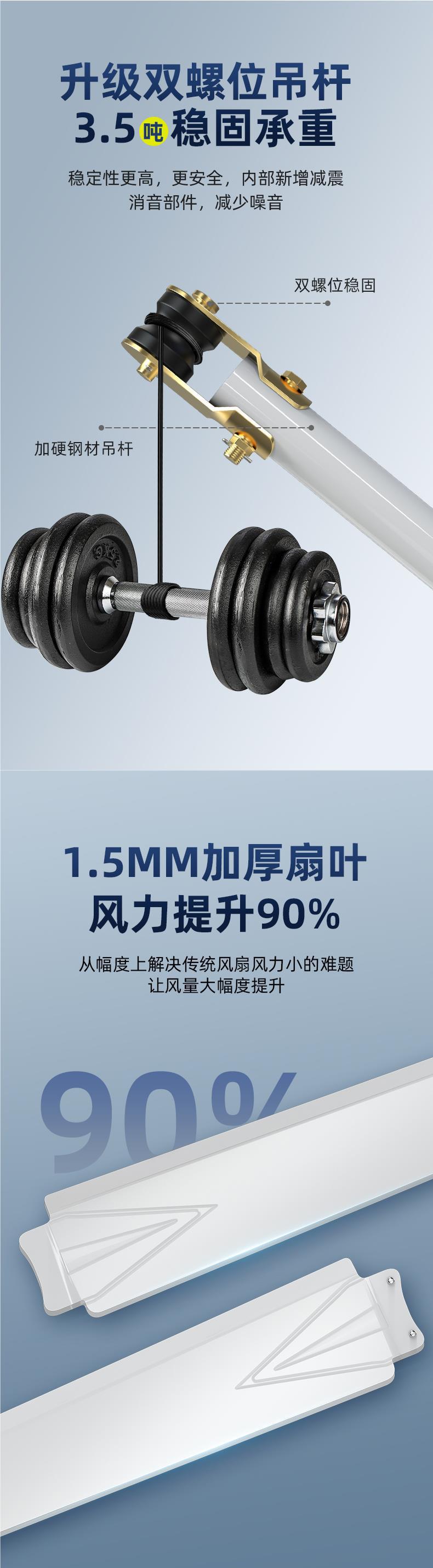 • [산업용 등급 행잉 킹 두꺼운 순수 구리 코일] 56inch 흰색/무단계 제어 [3 잎 플러스