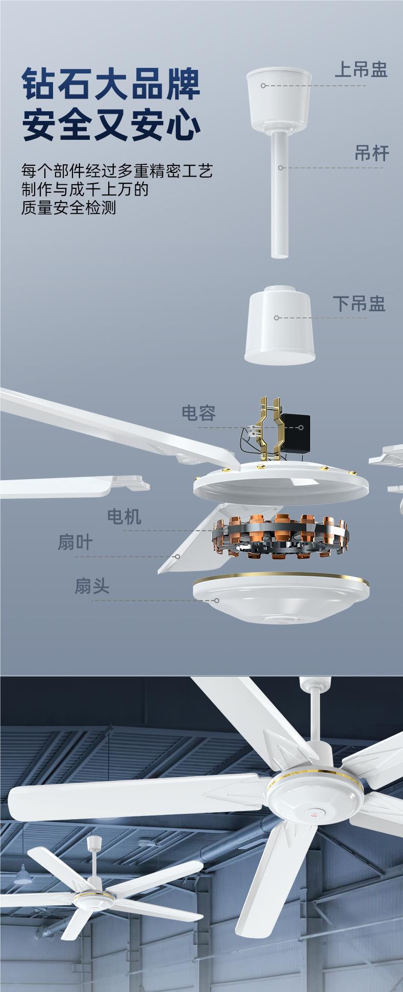 다이아몬드 브랜드 천장 팬 56inch 강풍 가정용 상업용 거실 식당 기숙사 산업용 천장 팬 침실스토어 가기