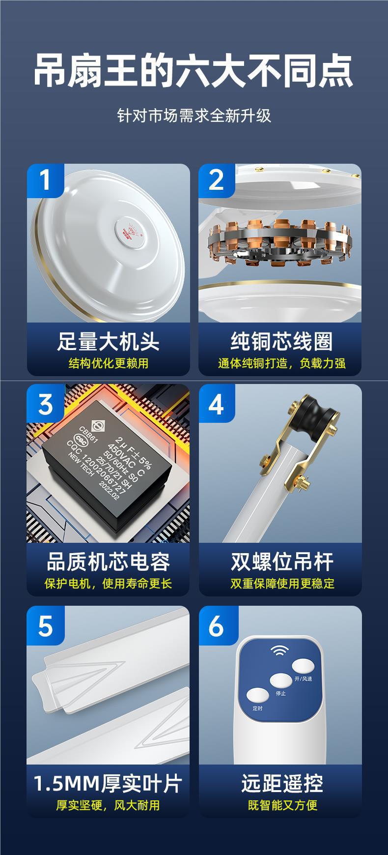 • [산업용 등급 행잉 킹 두꺼운 순수 구리 코일] 56inch 흰색/5단 조절 [5잎 플러스