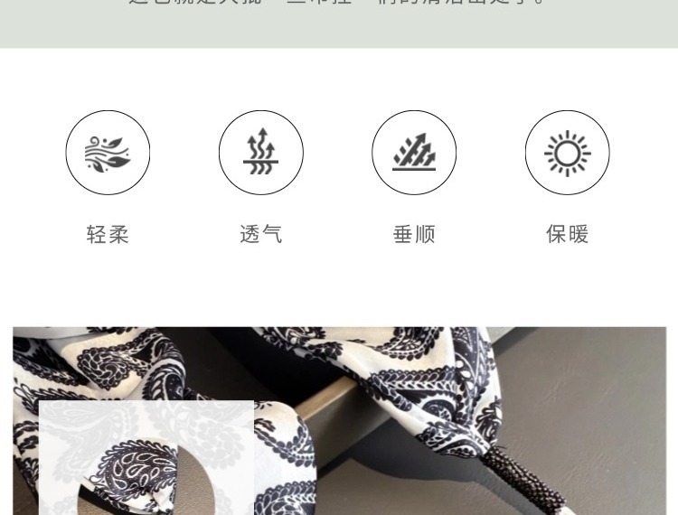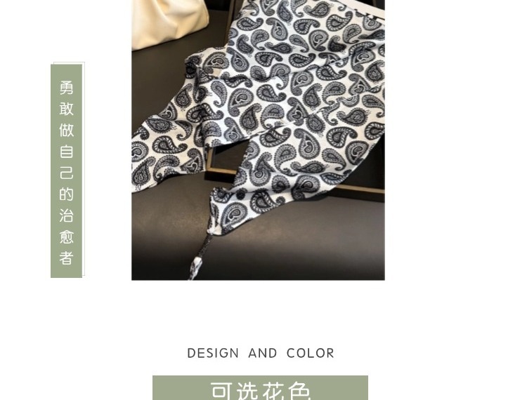 새로운 삼각형 스카프, 모조 실크 캐슈 꽃 숄, 신선하고 통기성이 뛰어난 여성용 부드러운 문학 장식 실크 스카프 여름 스카프