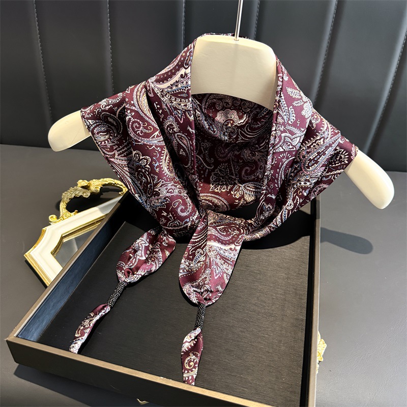 새로운 삼각형 스카프, 모조 실크 캐슈 꽃 숄, 신선하고 통기성이 뛰어난 여성용 부드러운 문학 장식 실크 스카프 여름 스카프스토어 가기