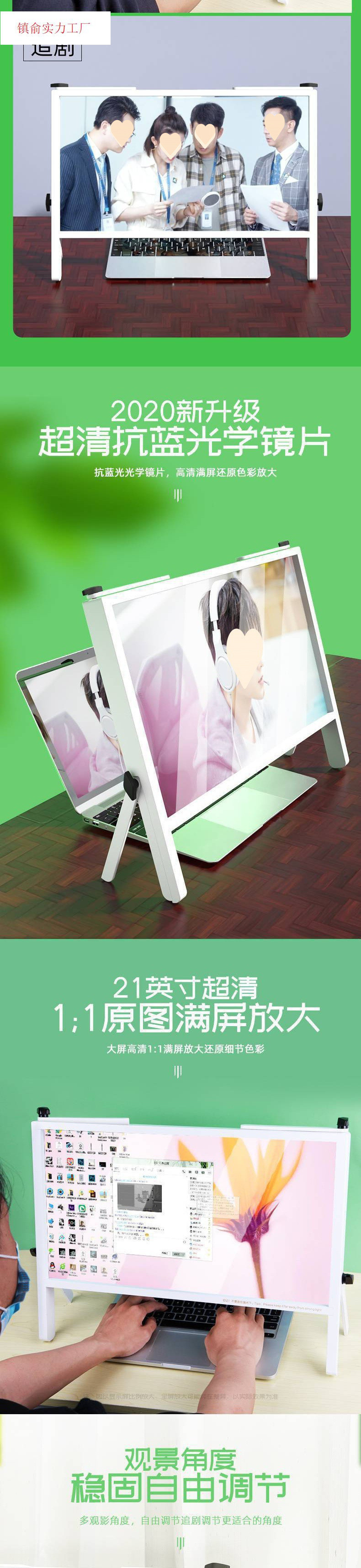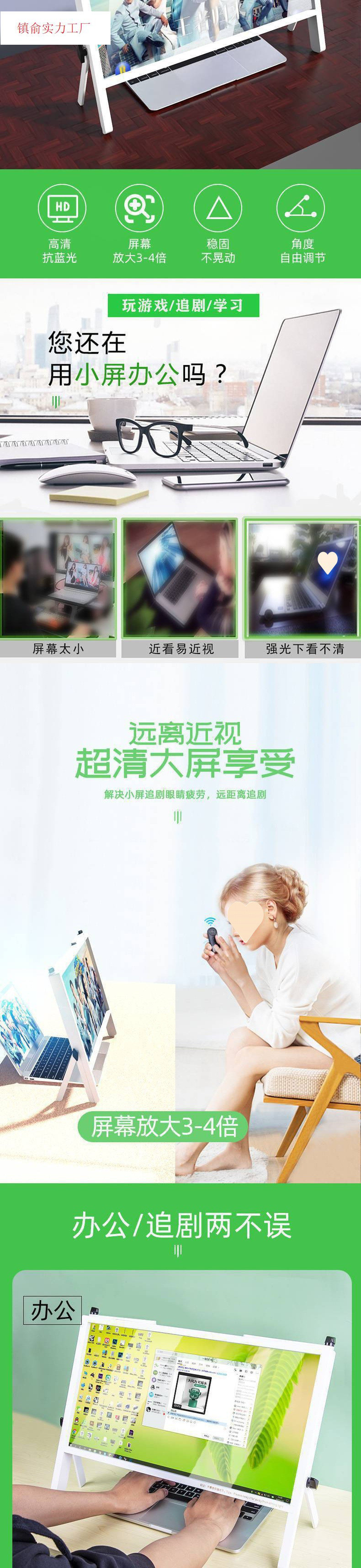 노트북 화면 증폭기, 매우 선명한 확대 스탠드, 데스크탑 높이 조절, 편리한 접이식 루스스토어 가기