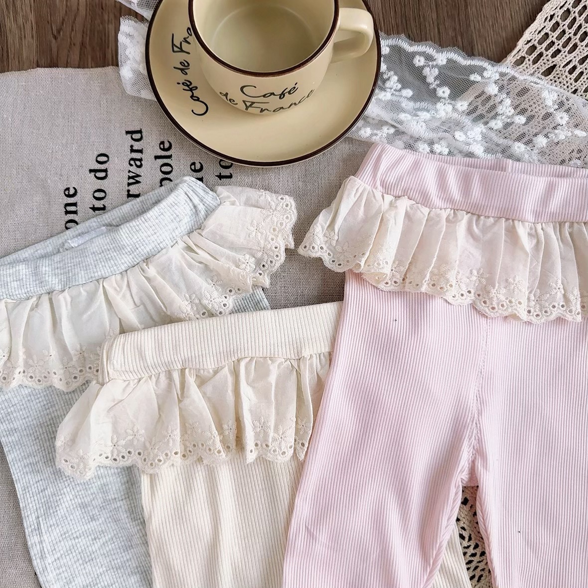 여름 소녀 달콤하고 편안한 바지 봄과 가을 새로운 도착 소녀 레이스 카프리 바지 얇은 캐주얼 소녀 바지스토어 가기