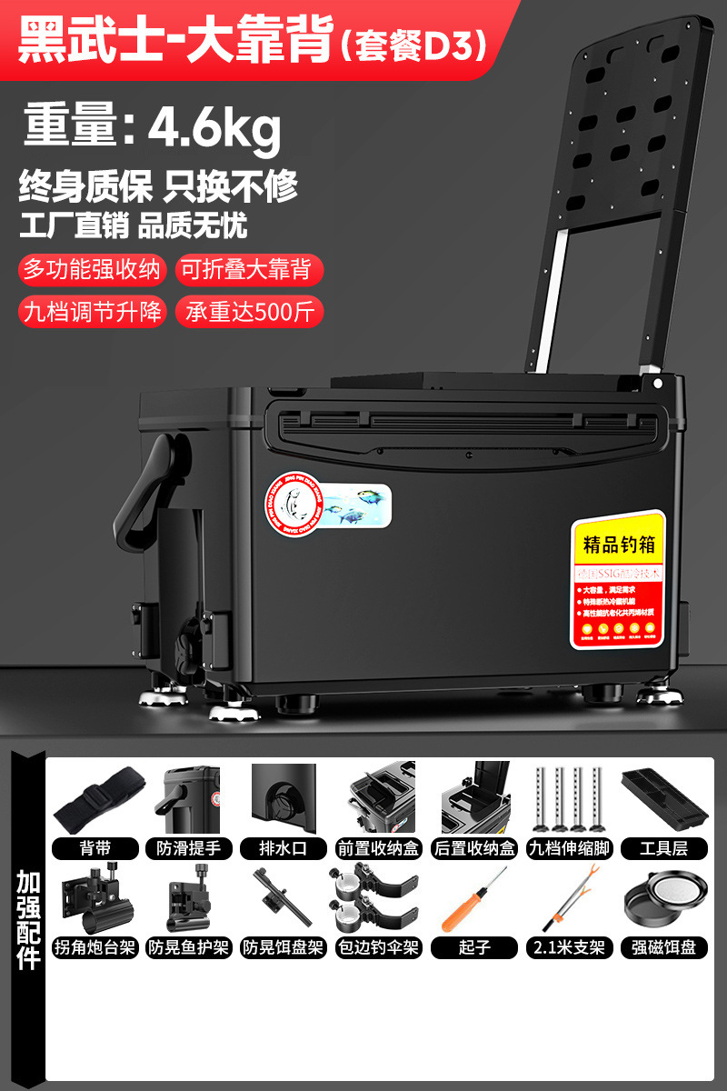 • ●블랙 D2 흔들림 방지 액세서리 - 대형 등받이 [알루미늄 마그네슘 16중 선물] + 미끼 트레이 + 브래킷●