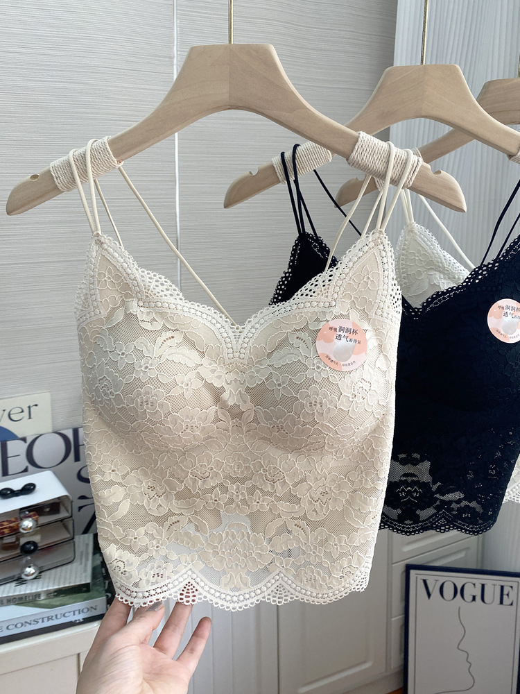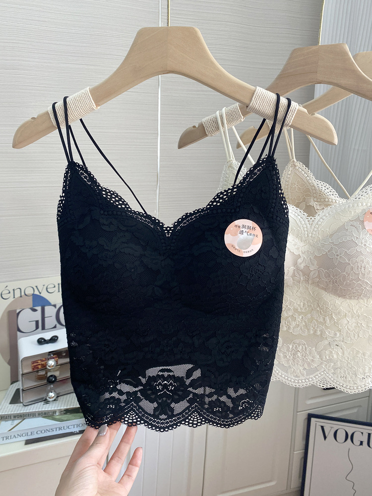 레이스 아름다운 등 서스펜더 여성용 가슴 패드 외부 착용 올인원 크로스 스파게티 스트랩 아름다운 등 서스펜더 조끼 여성용 내부 가슴 패드스토어 가기
