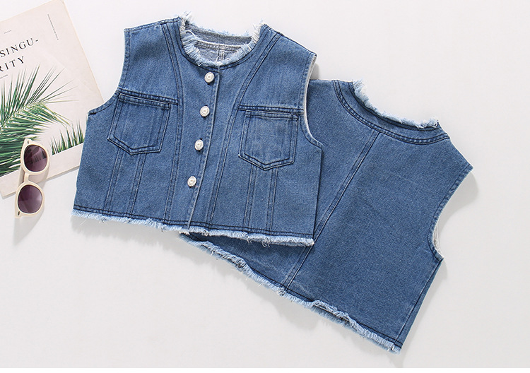 여름 여아용 얇은 데님 조끼, 중소형 어린이를 위한 다용도 외국 스타일 조끼, 트렌디하고 패셔너블한 조끼 아우터스토어 가기