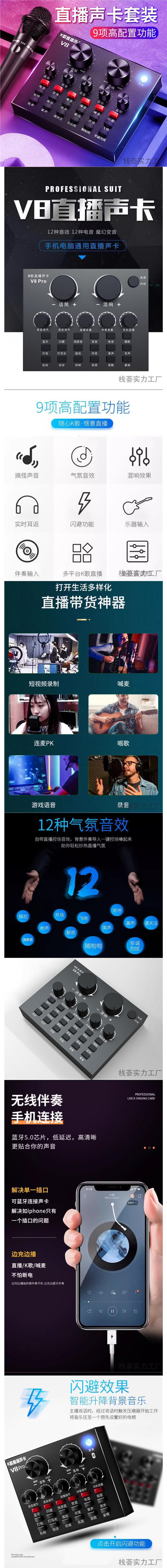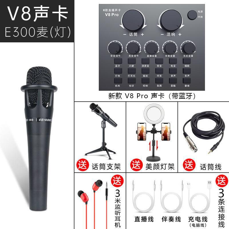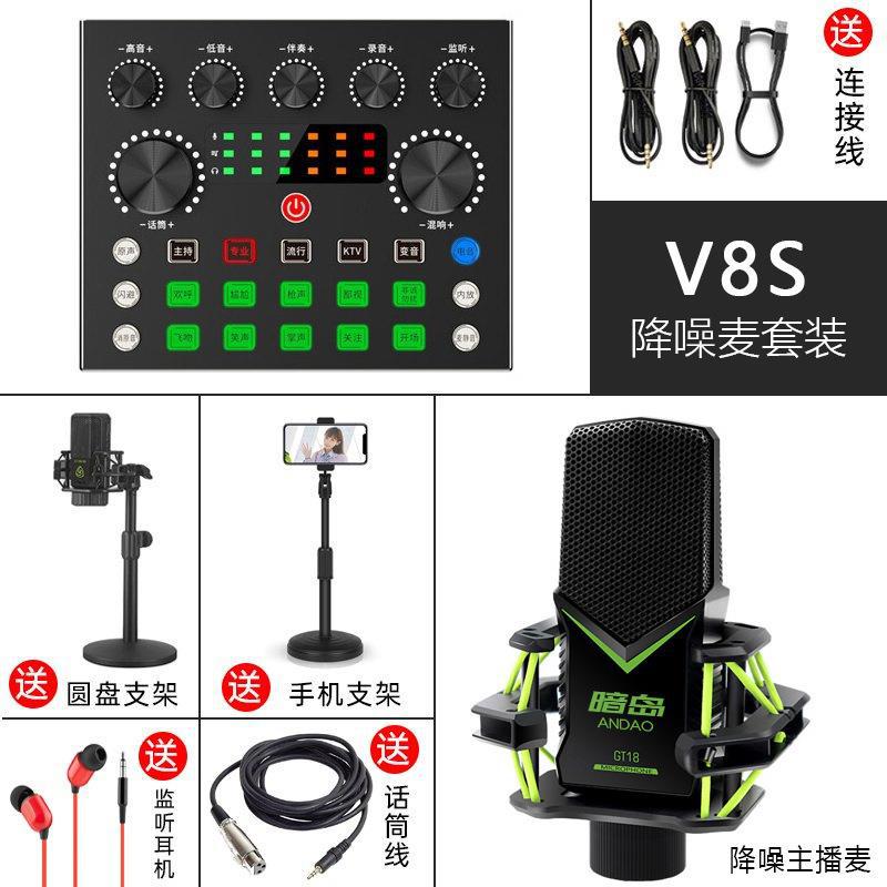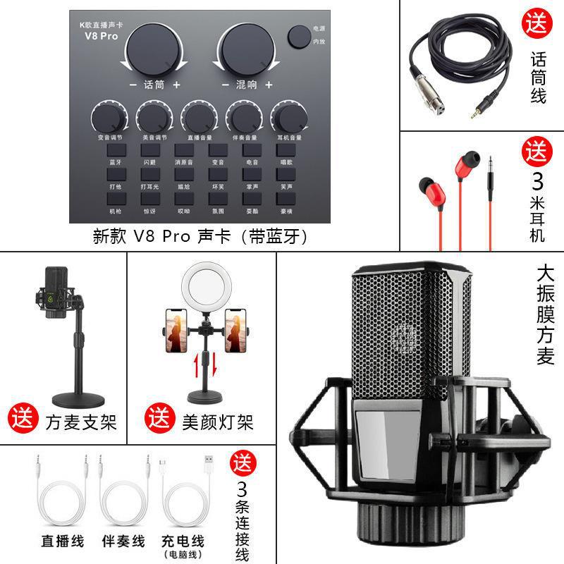 V8 사운드 카드 세트 앵커 라이브 방송 장비 사운드 카드 휴대 전화 빠른 손 노래 마이크 마이크 전체 k 노래 도매 세트
