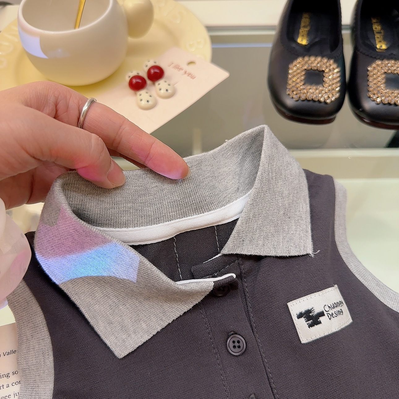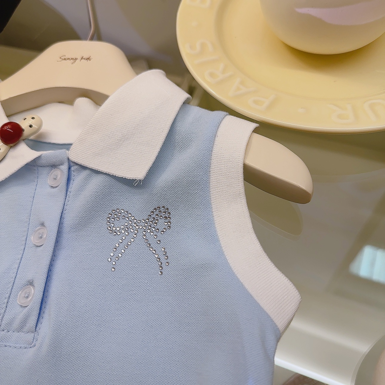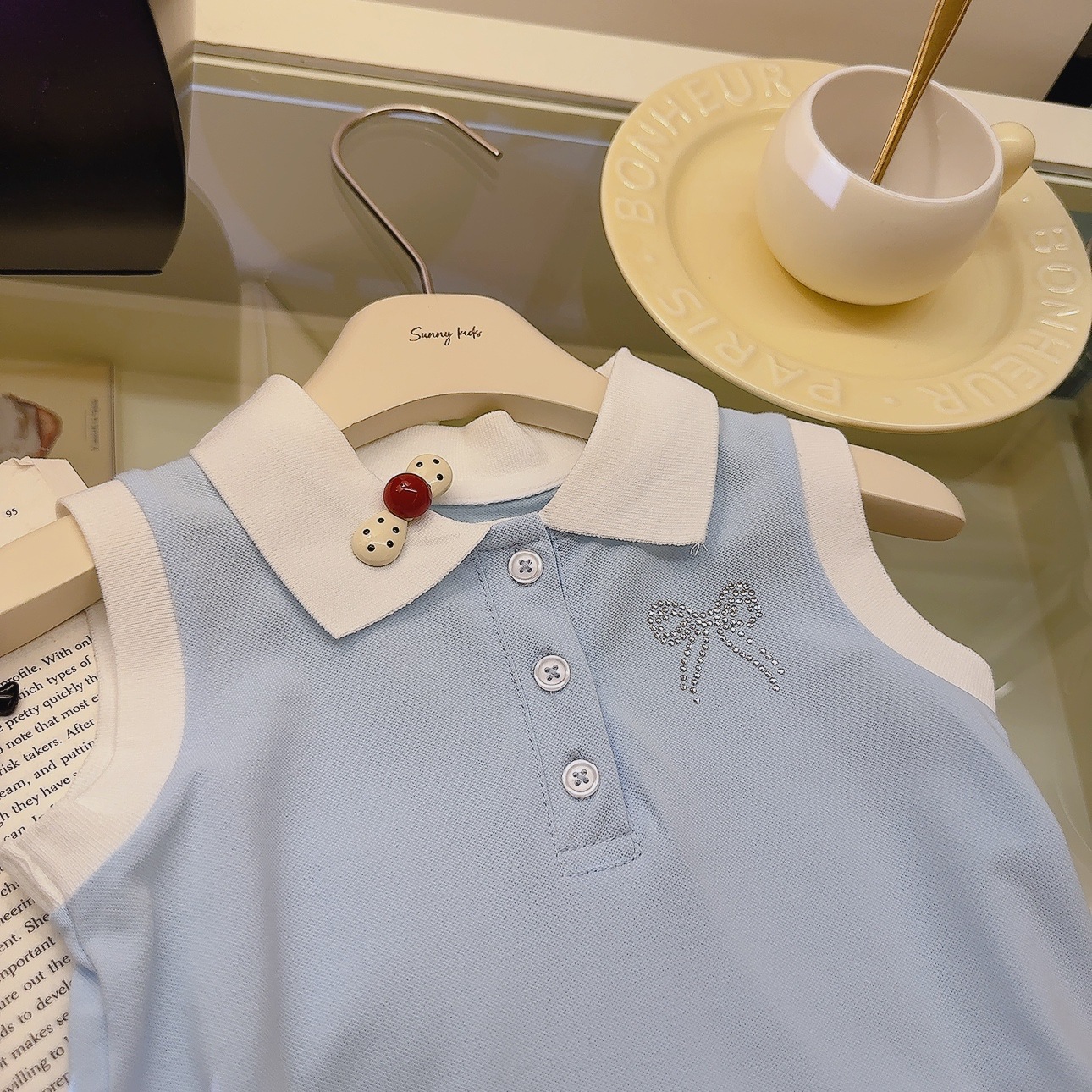 대학생 스타일 원피스 여아 캐주얼 폴로 칼라 플리츠 스커트 공주 원피스 민소매 원피스 도매 순면스토어 가기