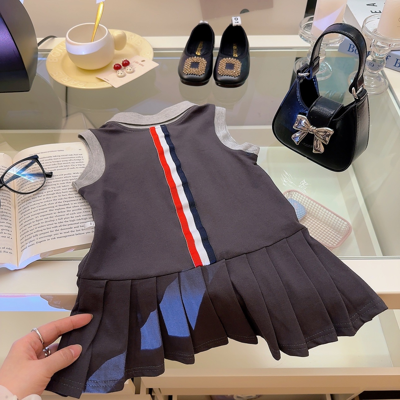 대학생 스타일 원피스 여아 캐주얼 폴로 칼라 플리츠 스커트 공주 원피스 민소매 원피스 도매 순면
