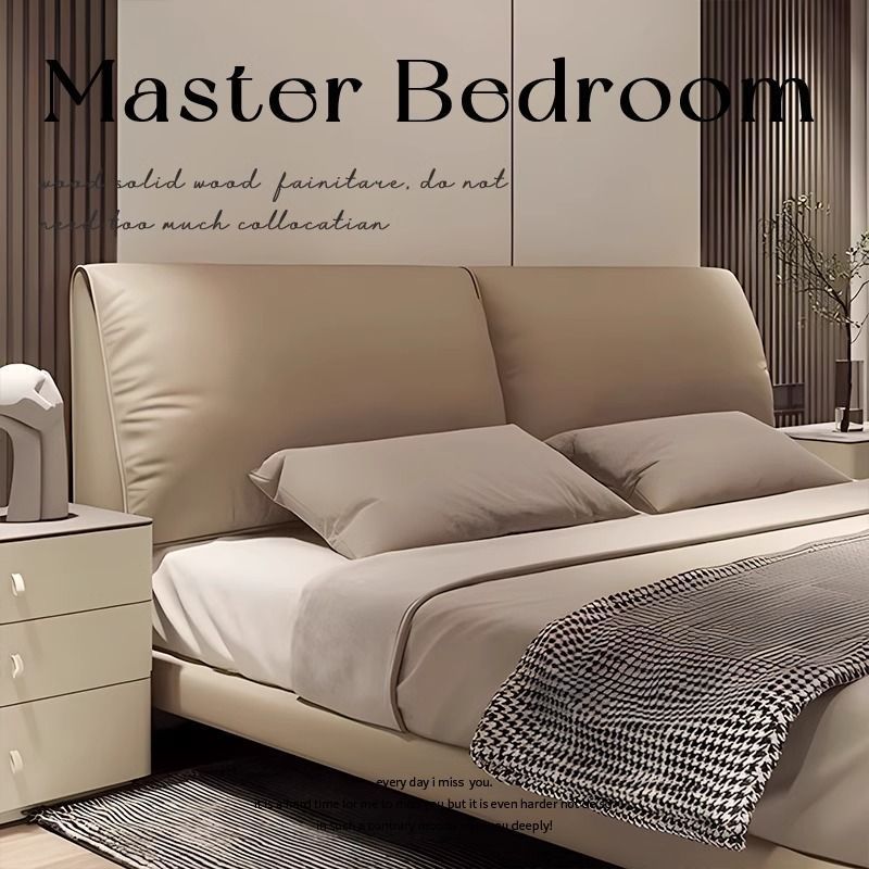 이탈리아 스타일 미니멀리스트 코끼리 귀 가죽 침대 마스터 침실 퀸 침대 현대 미니멀리스트 웨딩 침대 유도 램프 서스펜션 침대 더블 침대