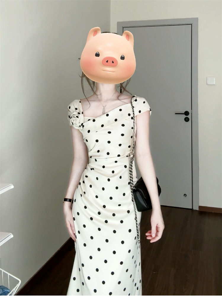 프랑스 스타일 우아한 흰색 폴로 도트 원피스 여성 여름 2025 새로운 스타일 입체 꽃 허리 감싼 엉덩이 긴 원피스스토어 가기