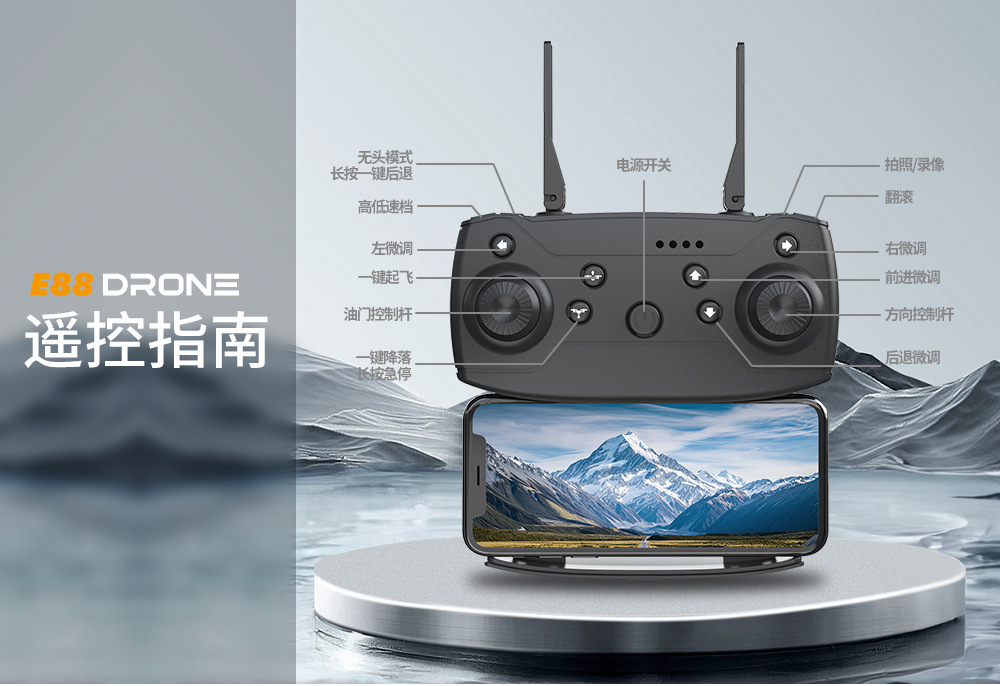 국경 간 폭발 E88 UAV 항공 사진 듀얼 카메라 접이식 4 축 항공기 4K HD 원격 제어 항공기 장난감스토어 가기