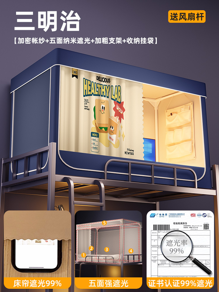 강력한 차광 침대 커튼과 모기장 일체형 일체형 대학 기숙사 싱글 기숙사 이층 침대 커튼 텐트스토어 가기
