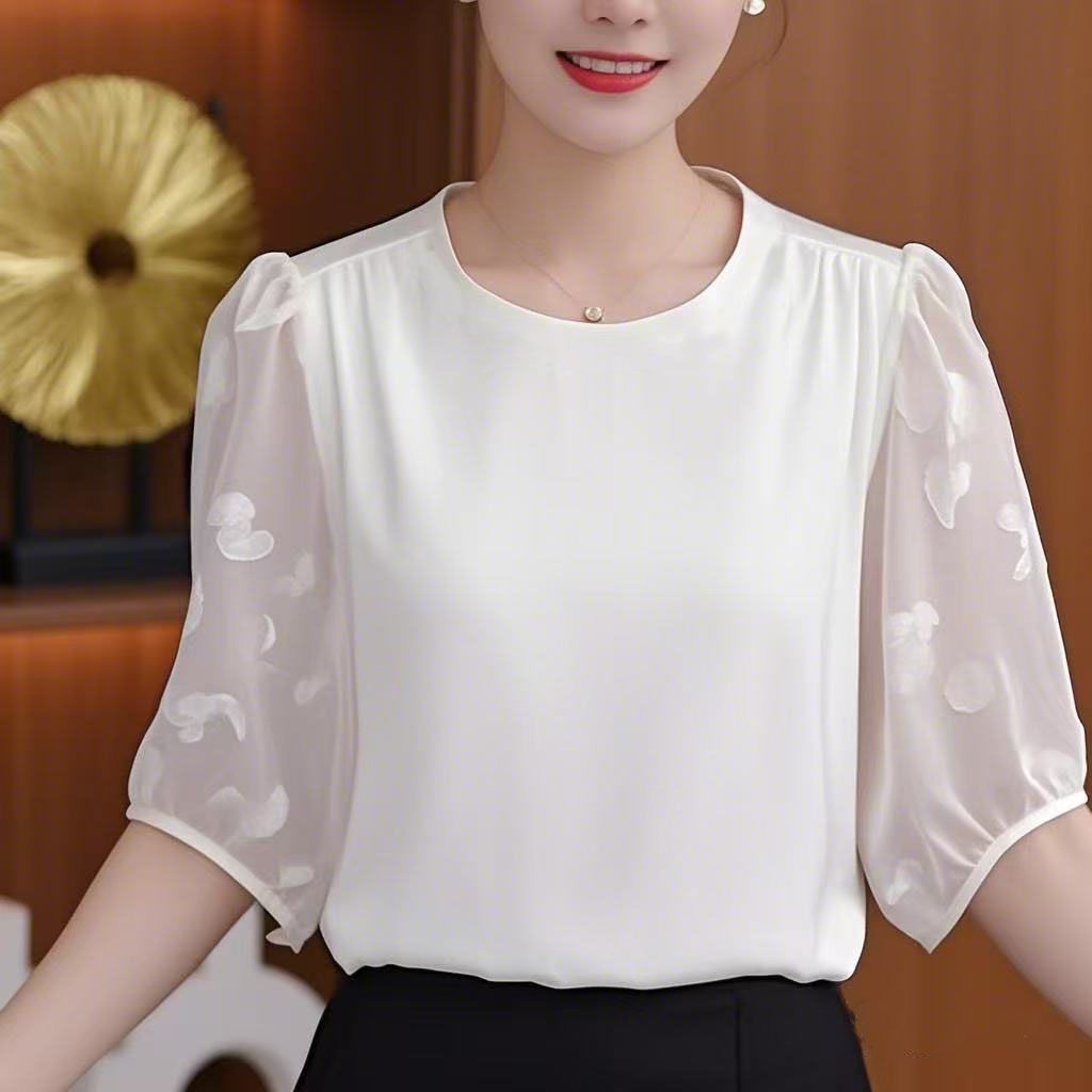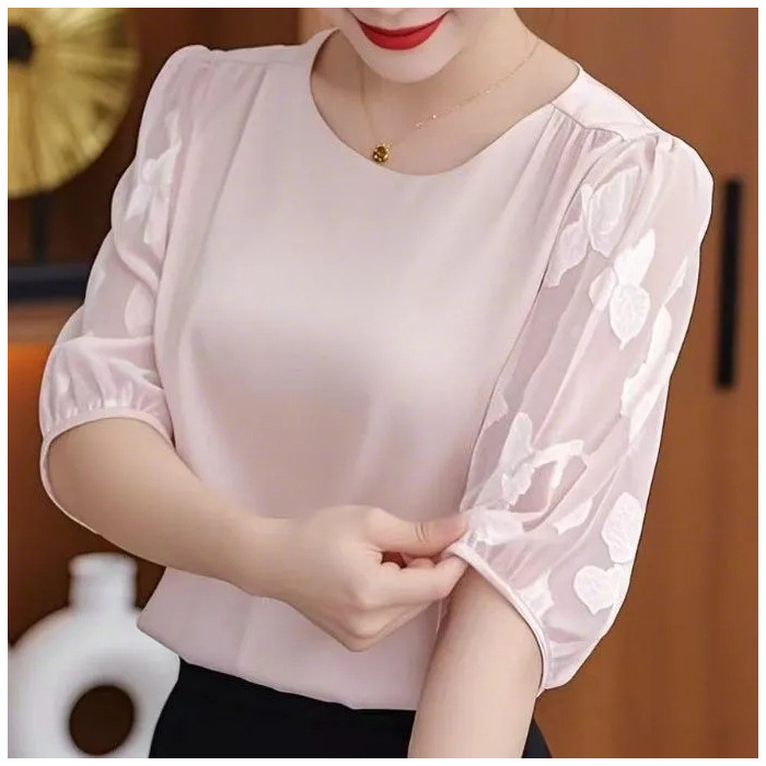 여성용 쉬폰 셔츠, 여름 한국식, 새로운 스타일, 루즈한 여름 배 스타일, 슈퍼 요정 탑, 기질 있는 작은 셔츠