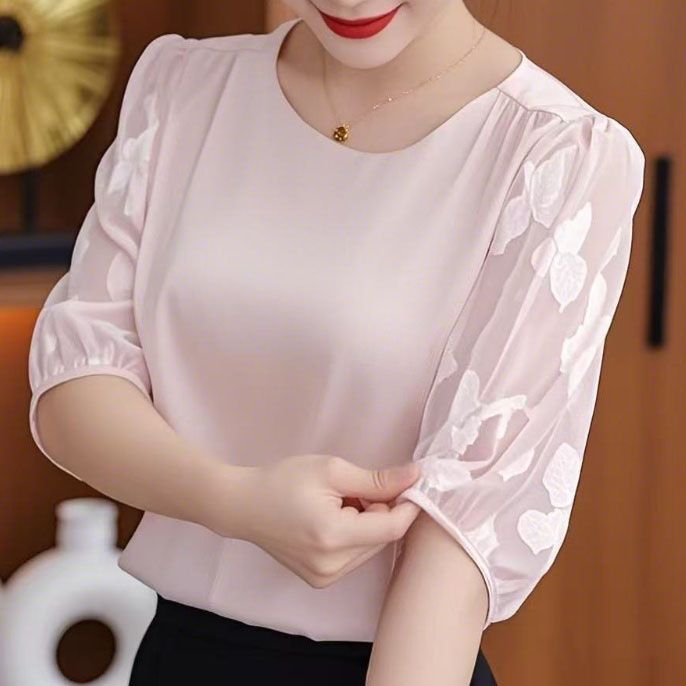 여성용 쉬폰 셔츠, 여름 한국식, 새로운 스타일, 루즈한 여름 배 스타일, 슈퍼 요정 탑, 기질 있는 작은 셔츠스토어 가기
