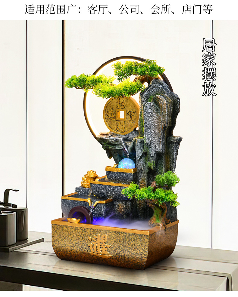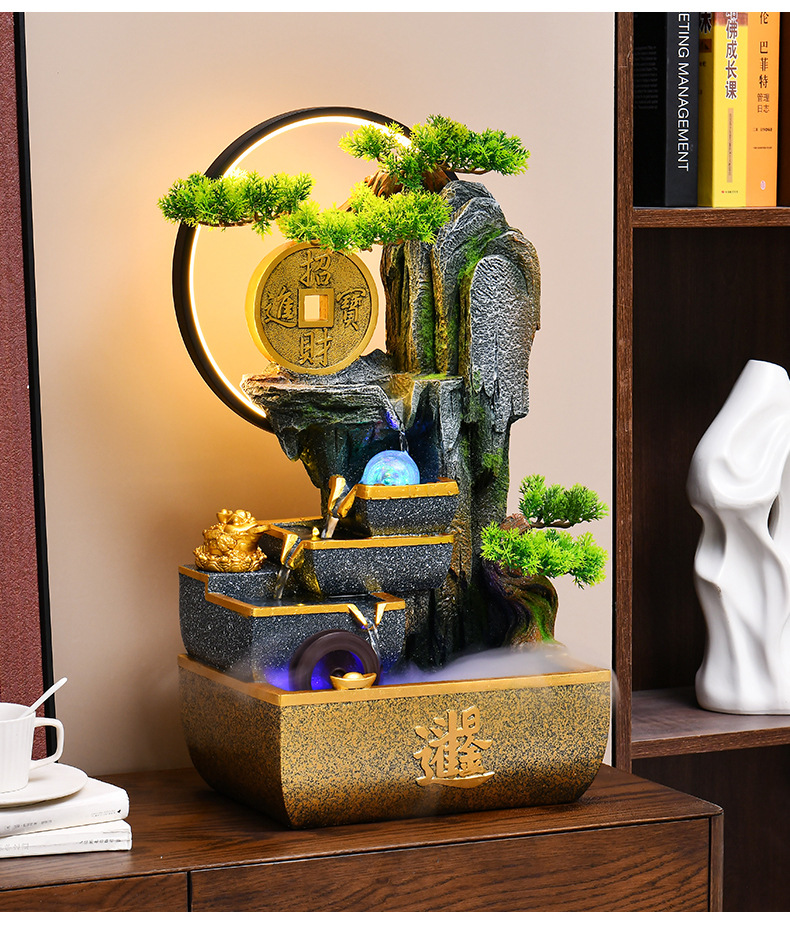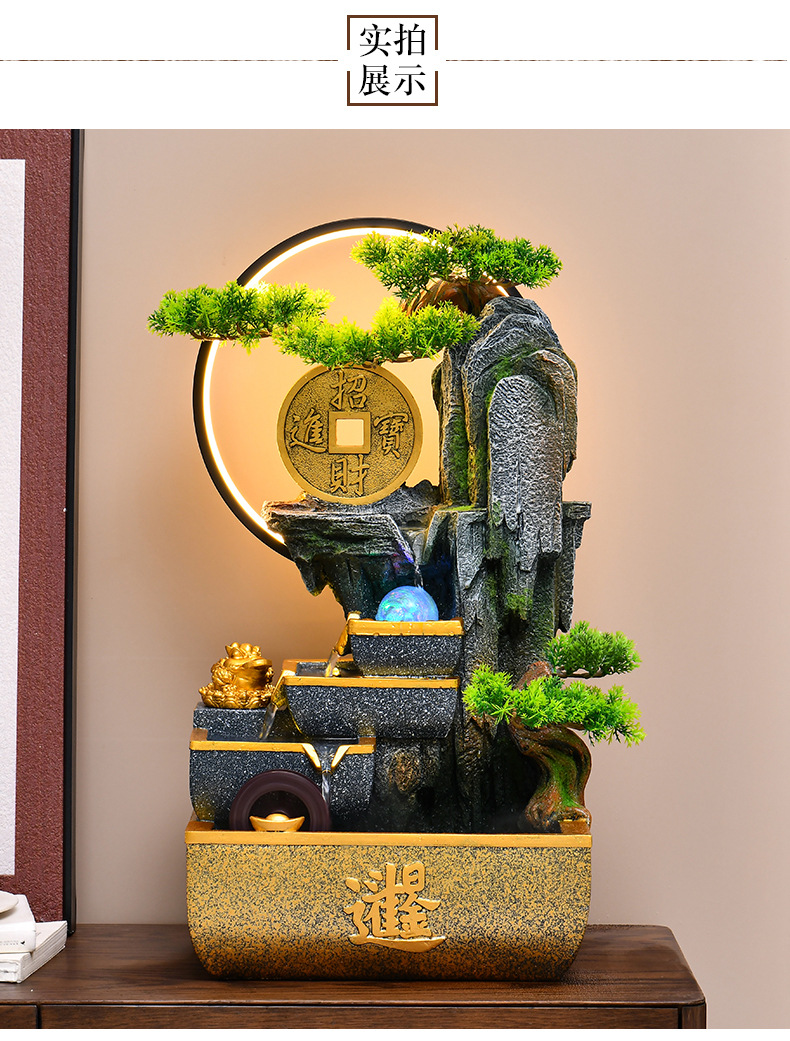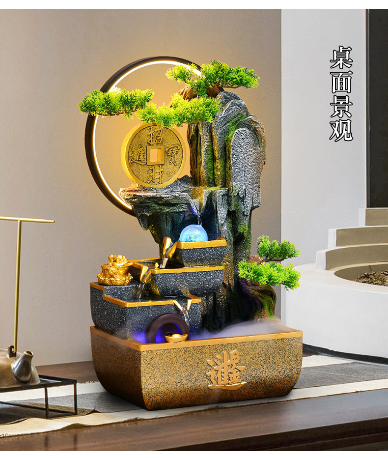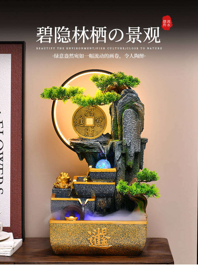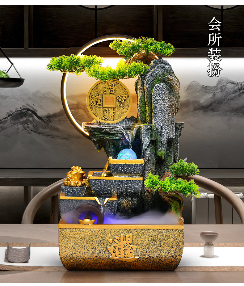 신중국풍 수경재산 장식품 거실 어항 사무실 순환식 장식 인공산수 고산수경