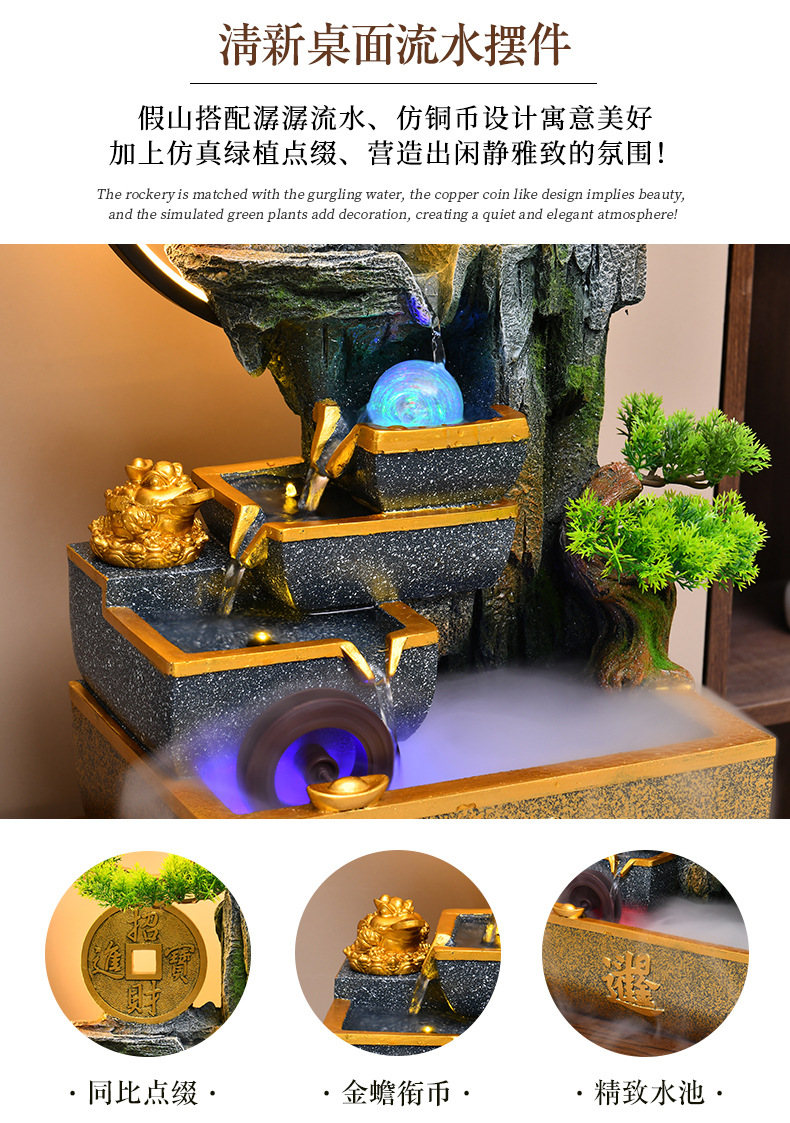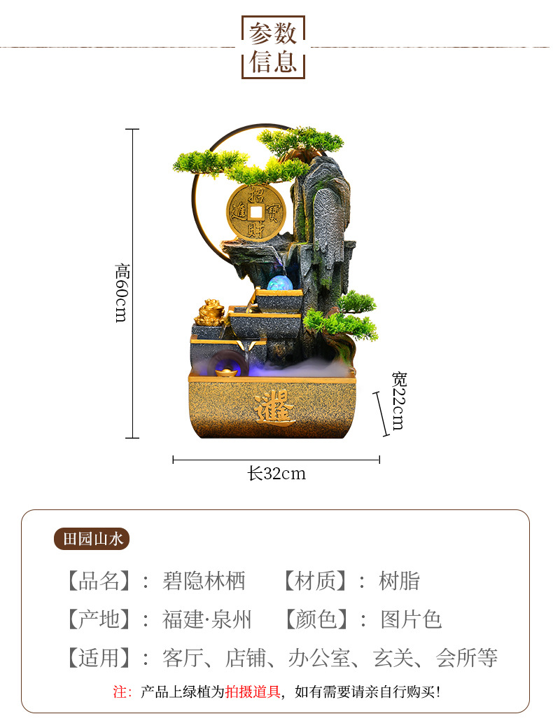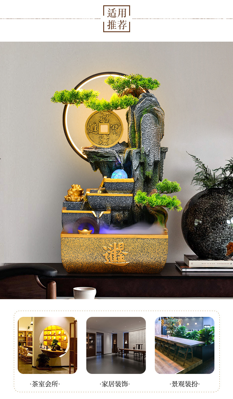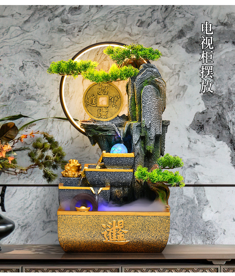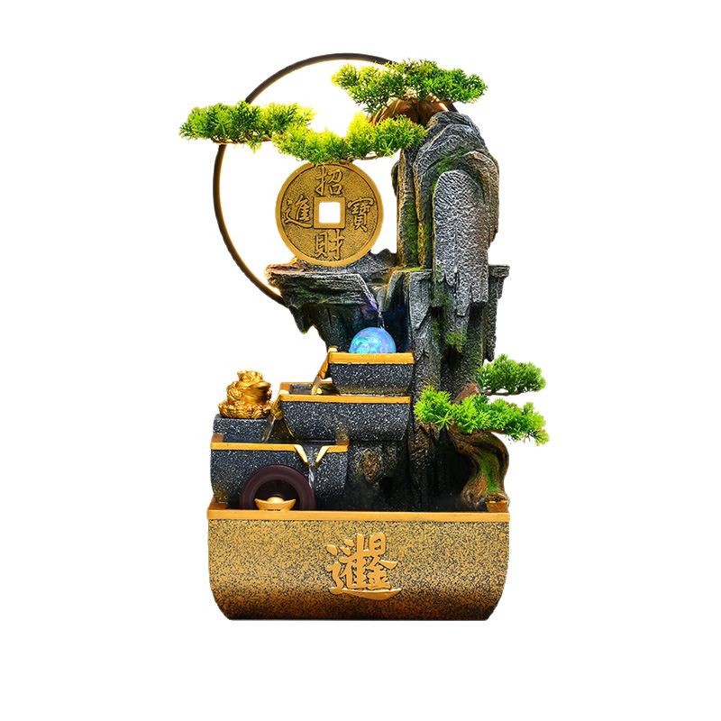 신중국풍 수경재산 장식품 거실 어항 사무실 순환식 장식 인공산수 고산수경