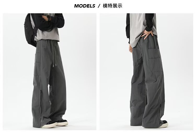 남성용 아웃도어 스플라이스 아웃도어 팬츠, 봄, 가을, 아메리칸 트렌디, 기능성 스타일, 스트리트 스타일, 루즈한 스트레이트 캐주얼 팬츠