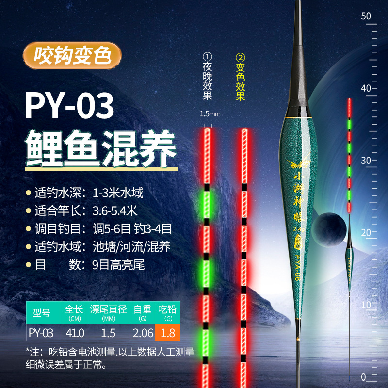 [3 팩] 물린 후크 색상 변경 하이라이트 테일 전자 발광 매우 민감한 Crucian Day와 야간 이중 사용 야간 낚시 부동