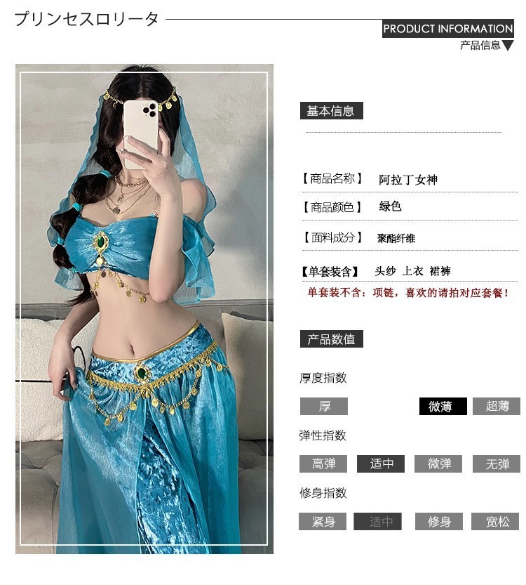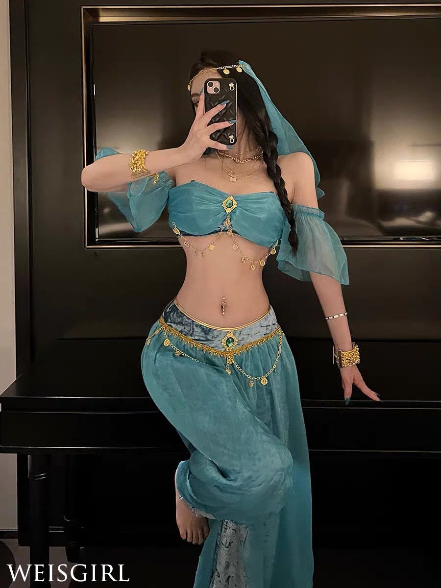 이국적인 인도 밸리 댄스 의상 cos 재스민 공주 섹시한 서양 댄스 여신 공연 의상 dj 앵커 댄스 의상