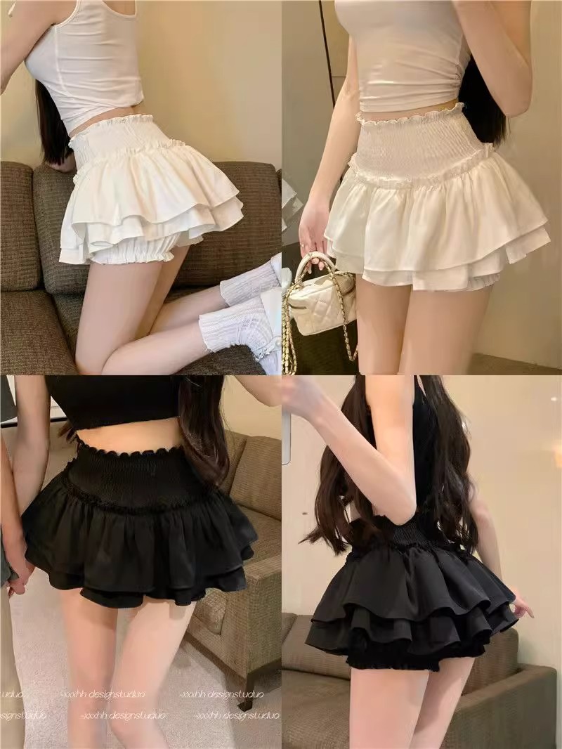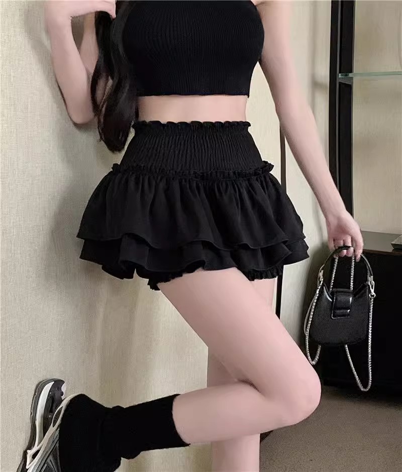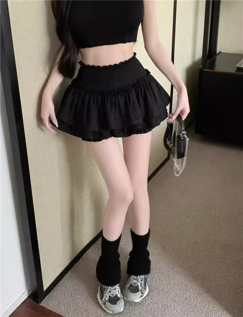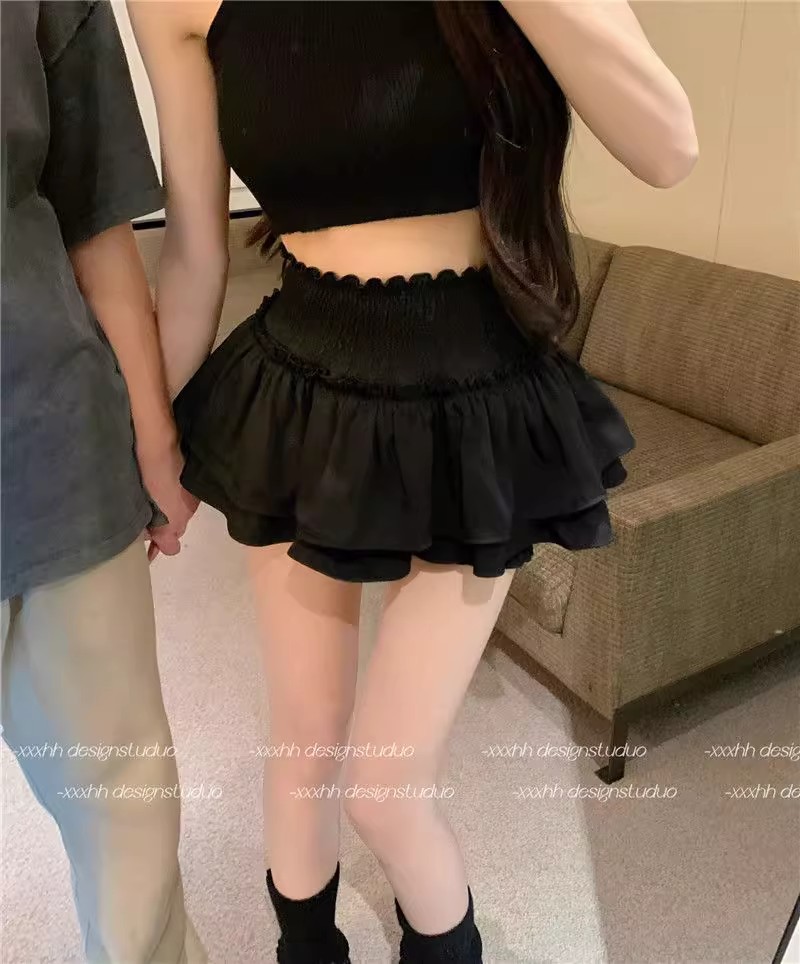 여성을 위한 프렌치 스타일 블랙 퍼프 스커트 봄 주름 허리 슬리밍 노출 방지 A라인 케이크 짧은 스커트스토어 가기