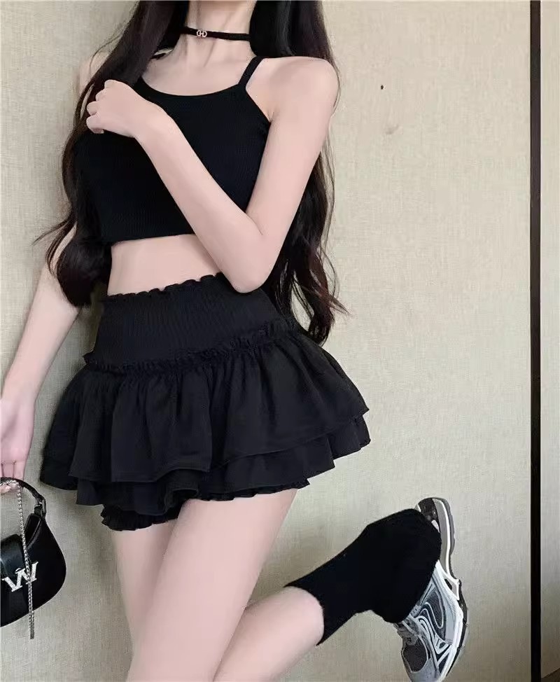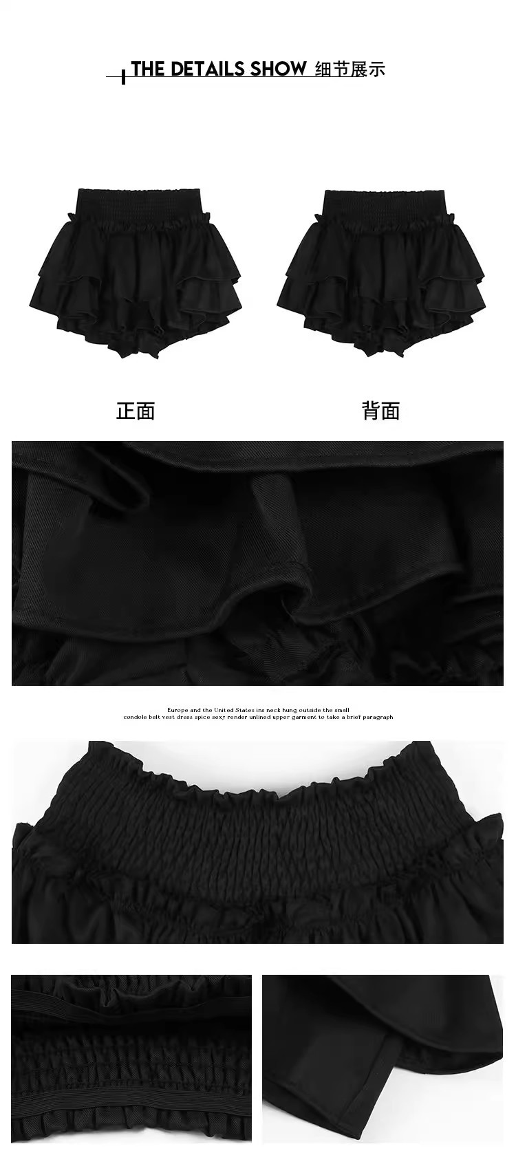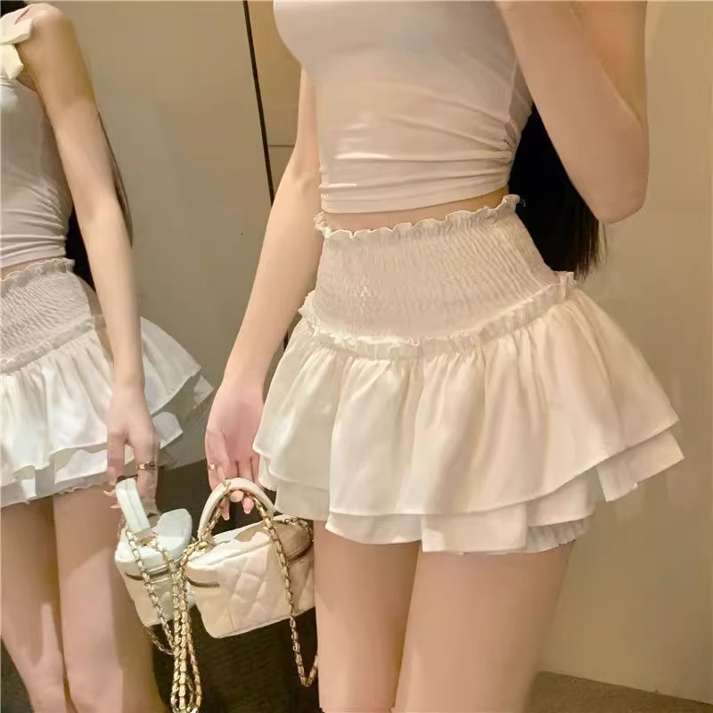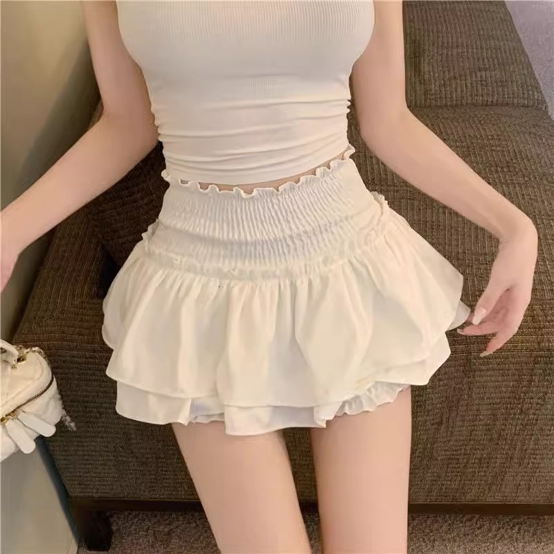 여성을 위한 프렌치 스타일 블랙 퍼프 스커트 봄 주름 허리 슬리밍 노출 방지 A라인 케이크 짧은 스커트스토어 가기