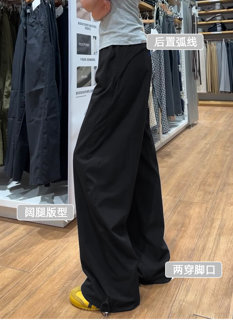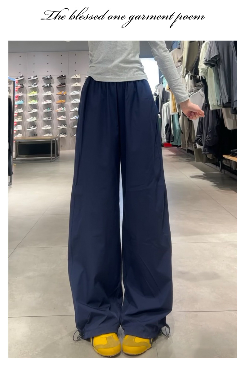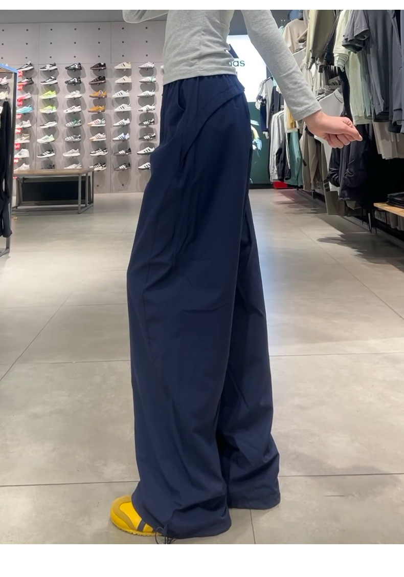 블랙 아메리칸 스타일 주의 바지 여성의 2025 새로운 높은 허리 느슨한 복용량 캐주얼 게으른 바람 속도 건조 스포츠 바지스토어 가기