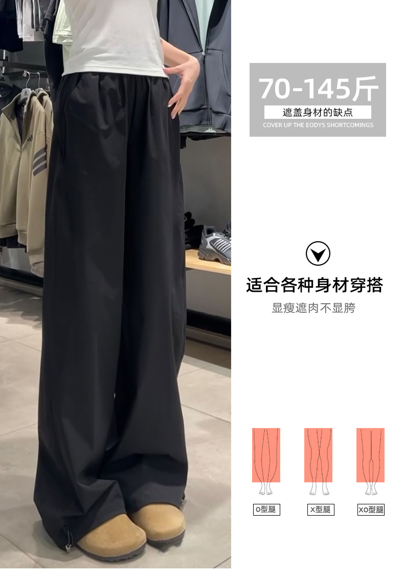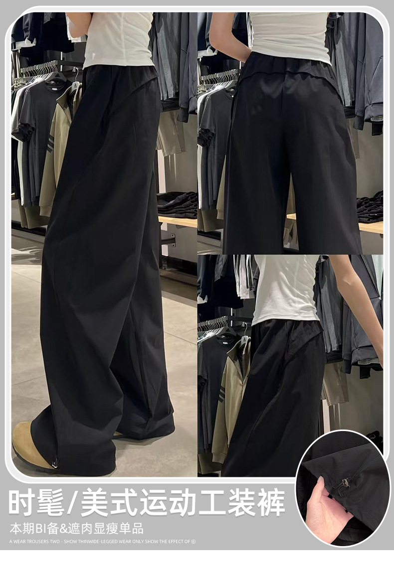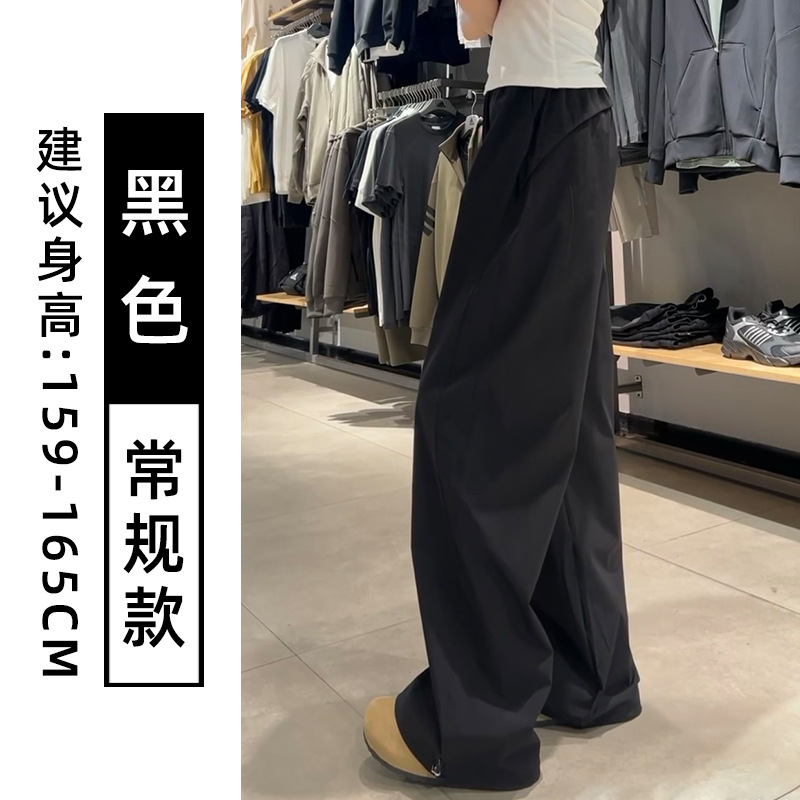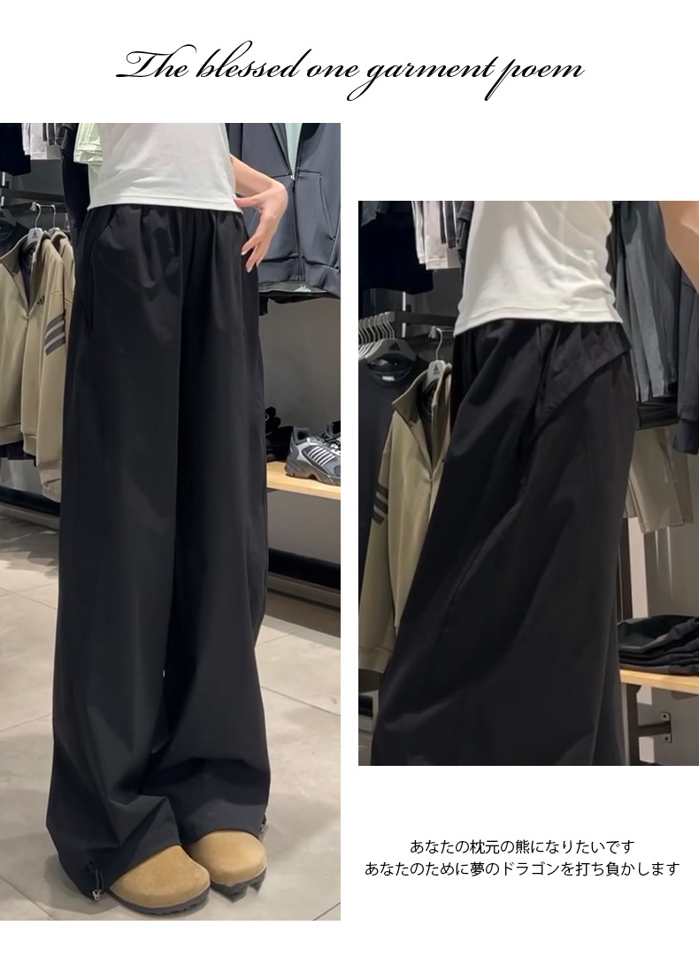 블랙 아메리칸 스타일 주의 바지 여성의 2025 새로운 높은 허리 느슨한 복용량 캐주얼 게으른 바람 속도 건조 스포츠 바지