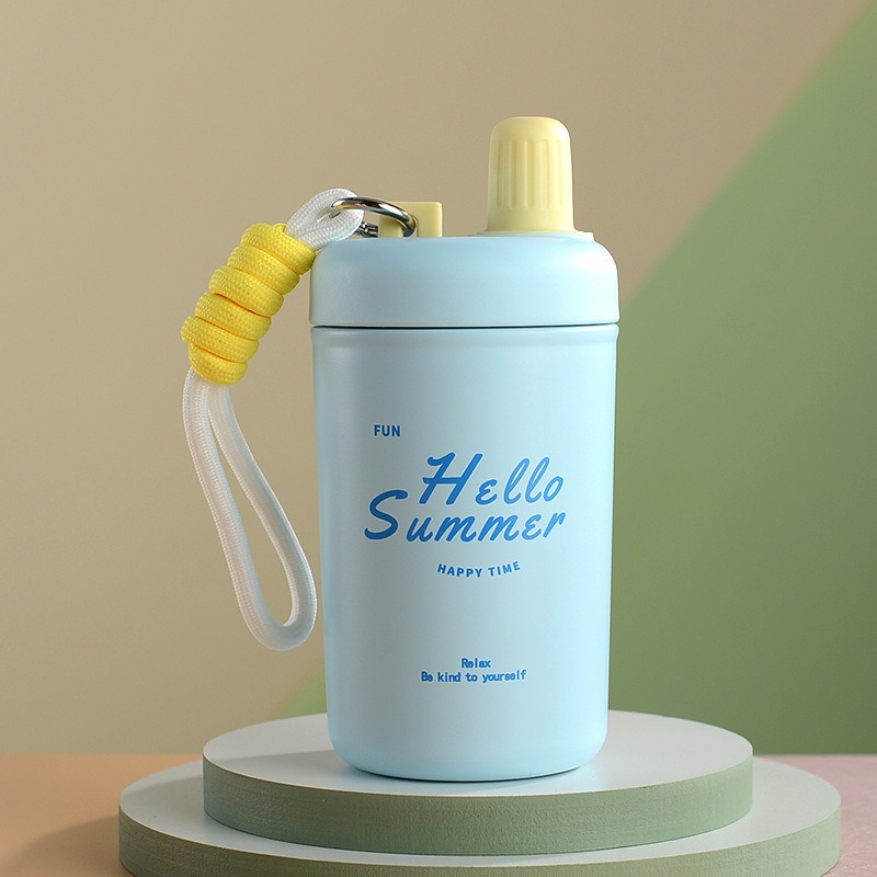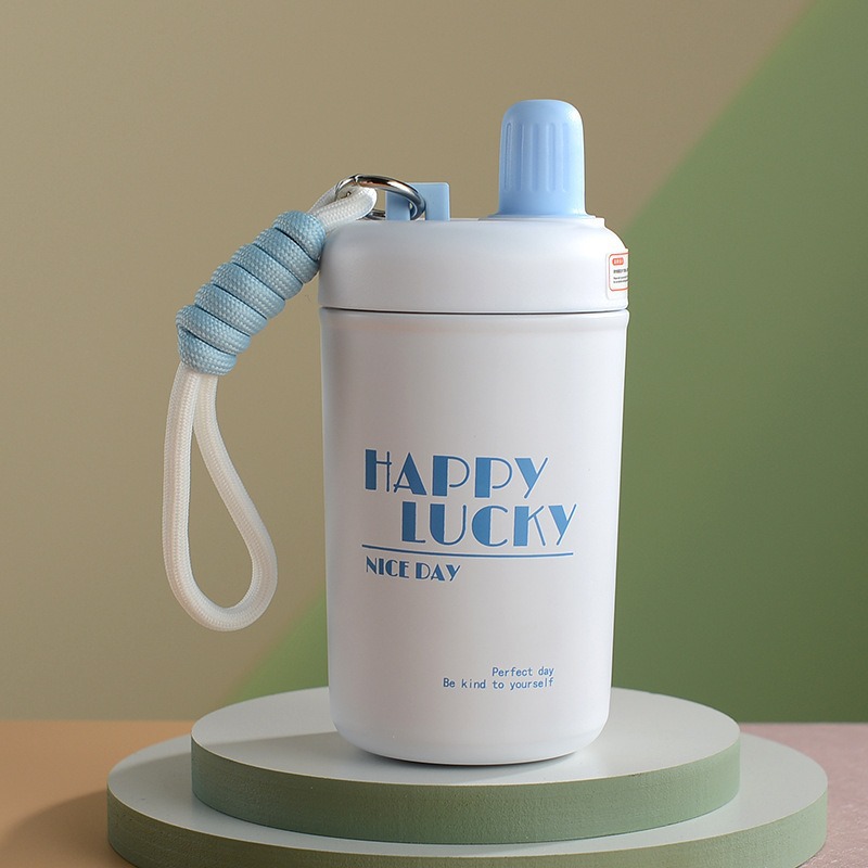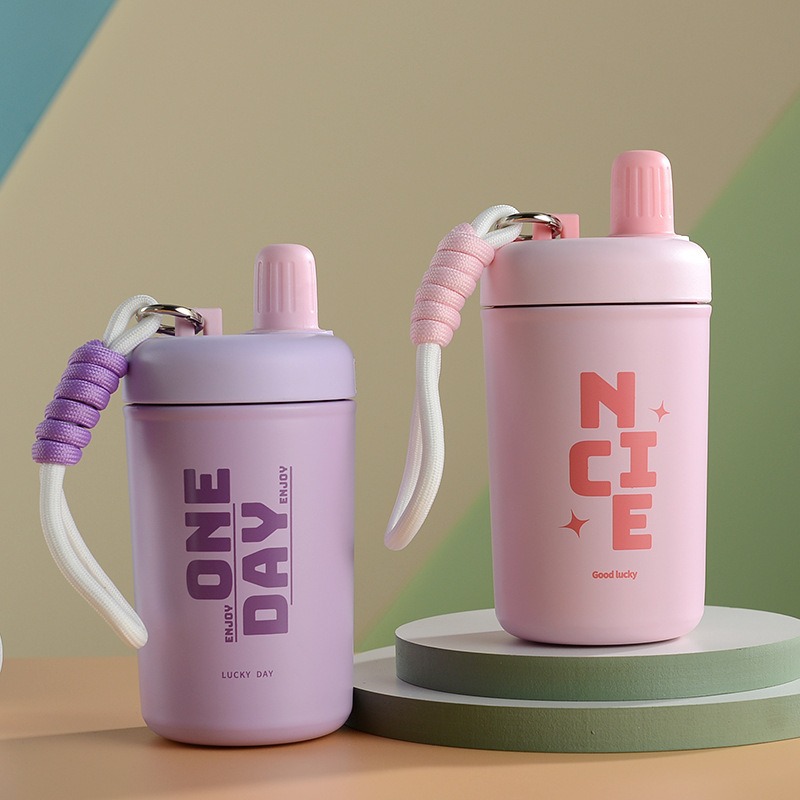 고급스럽고 귀여운 소녀 밀짚 컵 304 스테인레스 스틸 휴대용 자동차 컵 손잡이와 치유 컵 보온병 컵