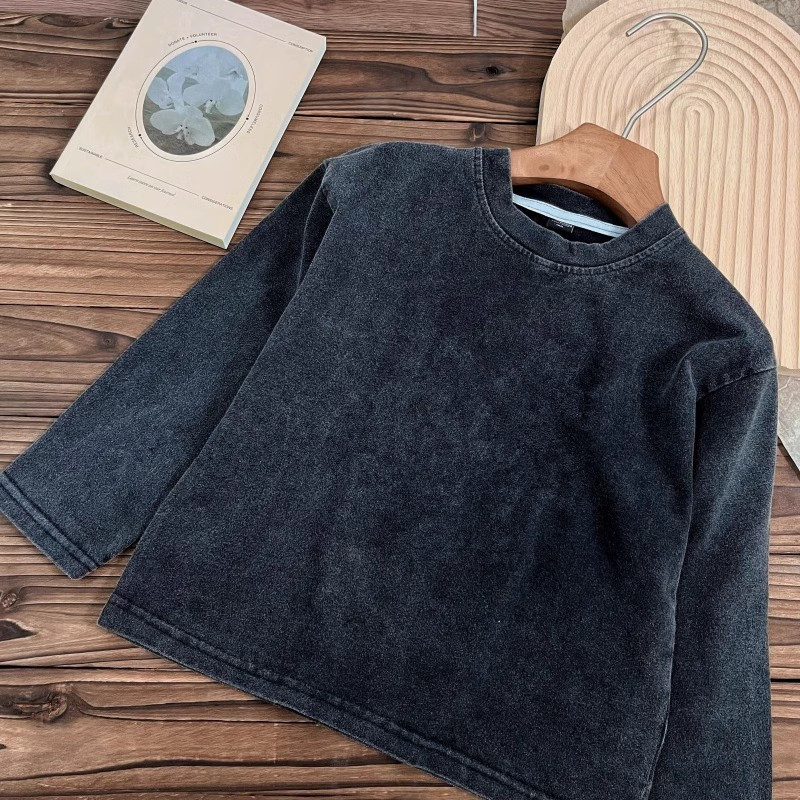 어린이 순수한면 세척 물 오래 된 단색 긴 소매 티셔츠 봄과 가을 얇은 소년과 소녀 내베이스 셔츠 재킷 도매스토어 가기