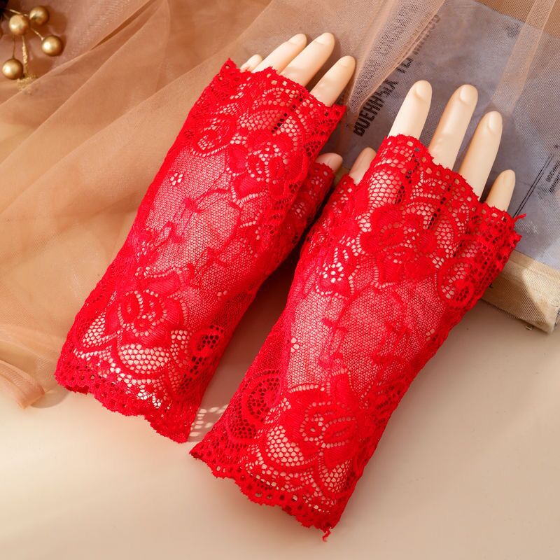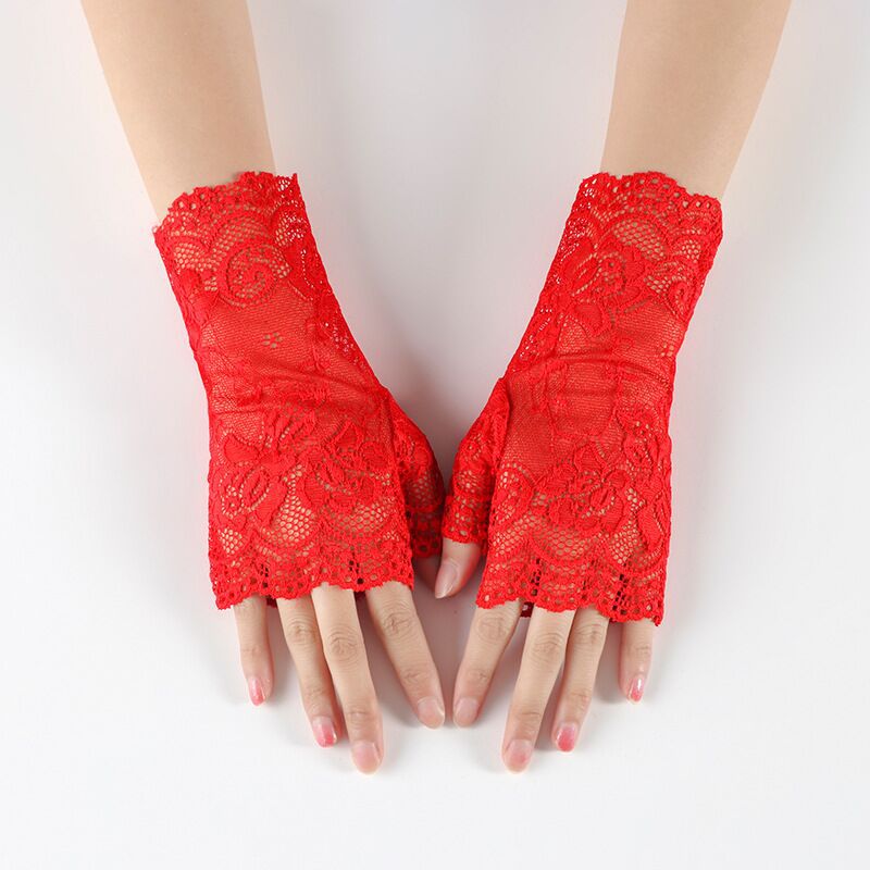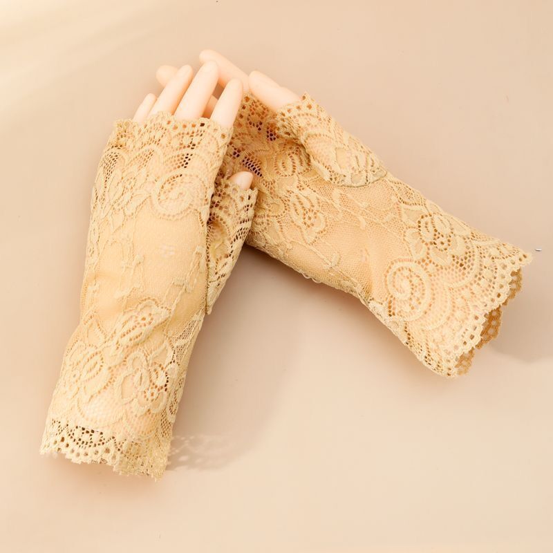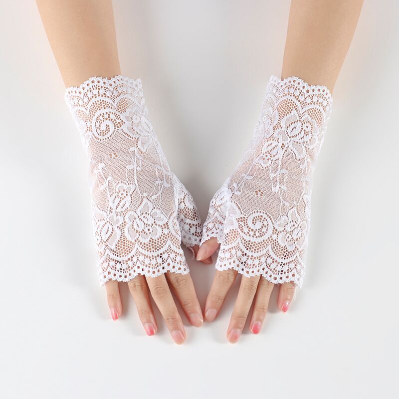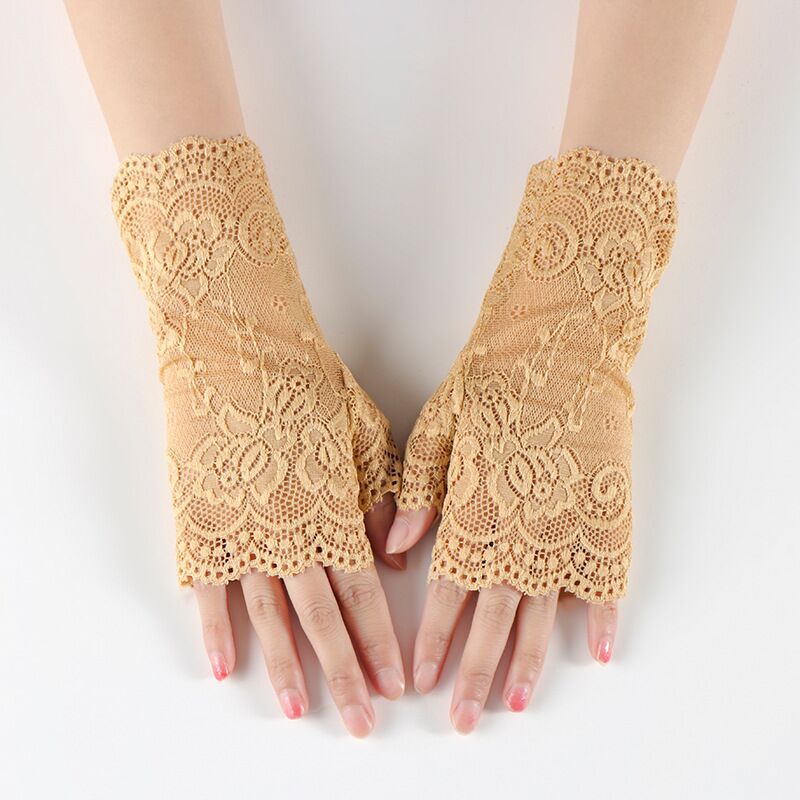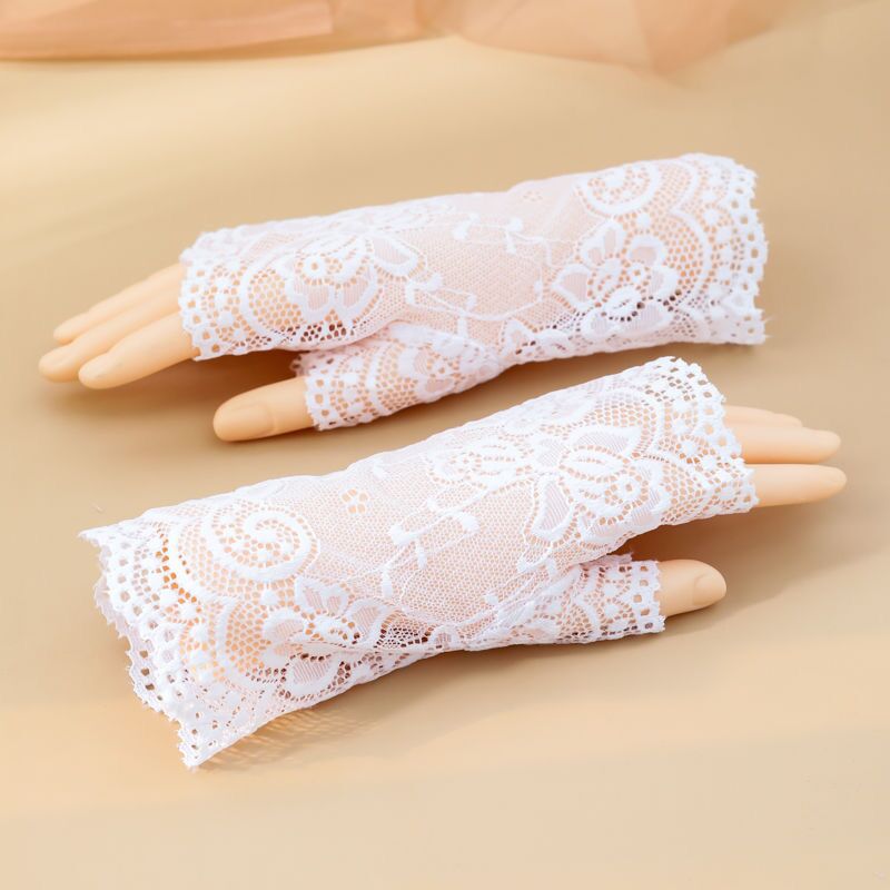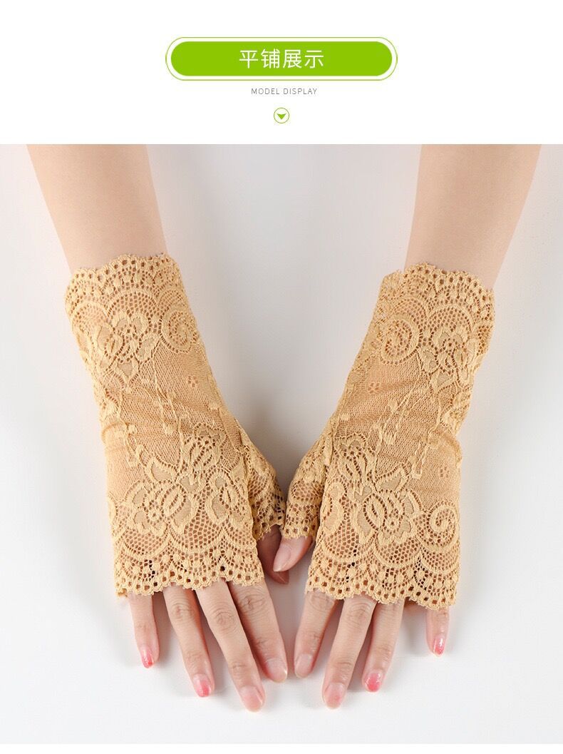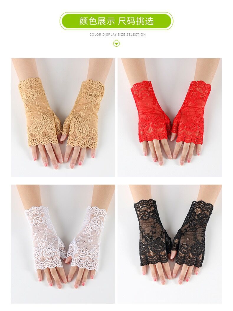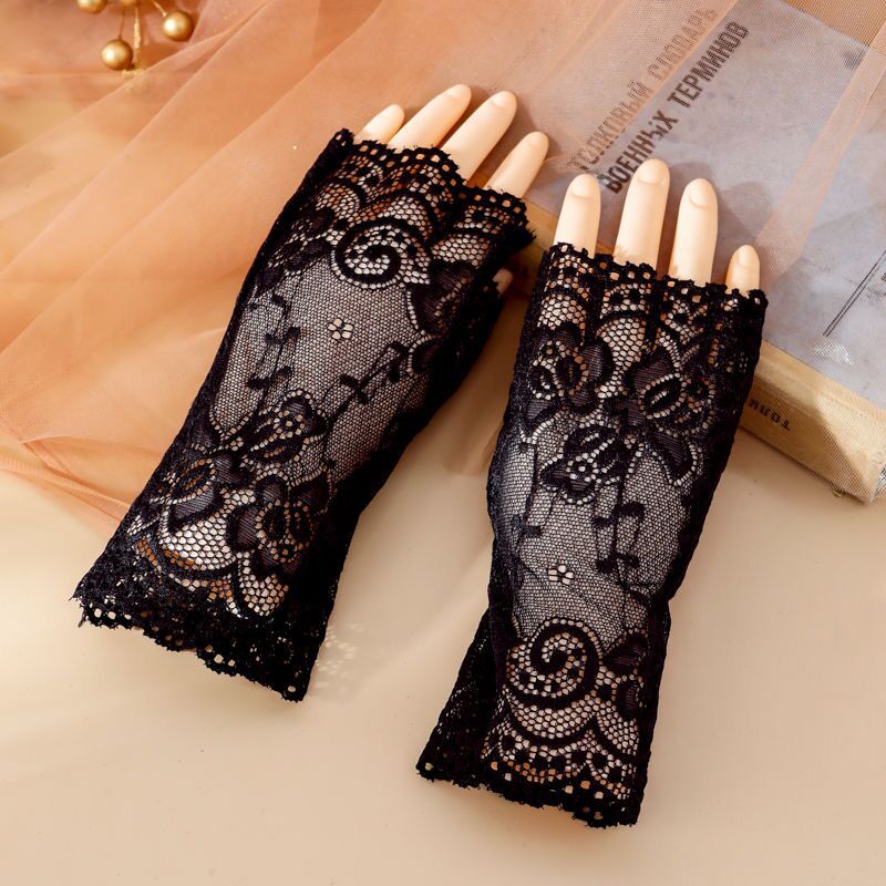 여름 레이스 자외선 차단제 반 손가락 핑거리스 장갑 여성용 터치 스크린 장갑 흉터를 덮는 얇은 자외선 차단제 장갑 검정색 섹시스토어 가기