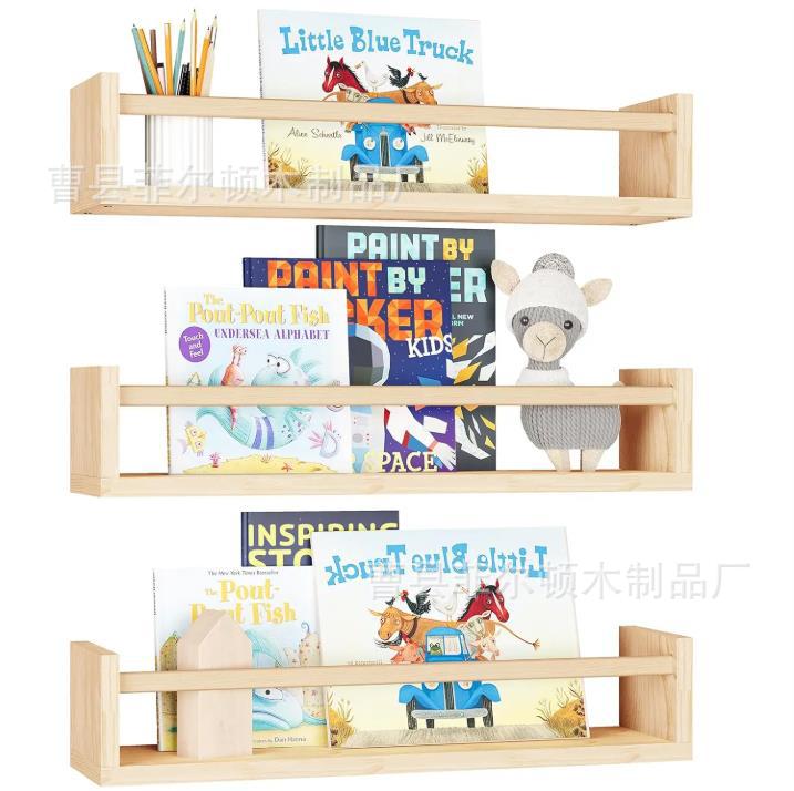 Ins 스타일 현대 간단한 단단한 나무 잡지 그림책 보관 벽걸이 형 책장 인형 장식품 보관 랙