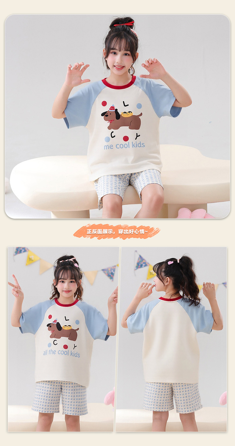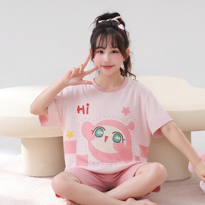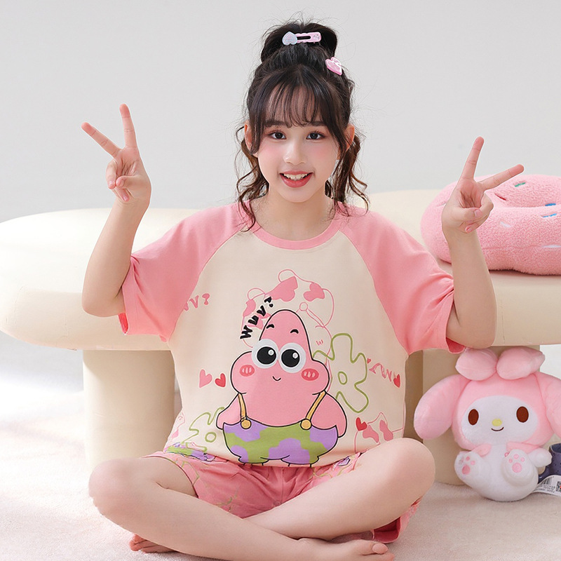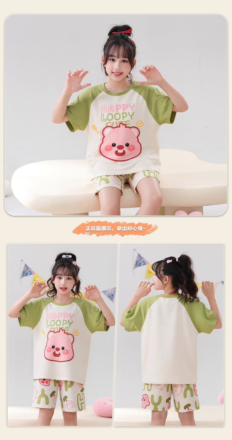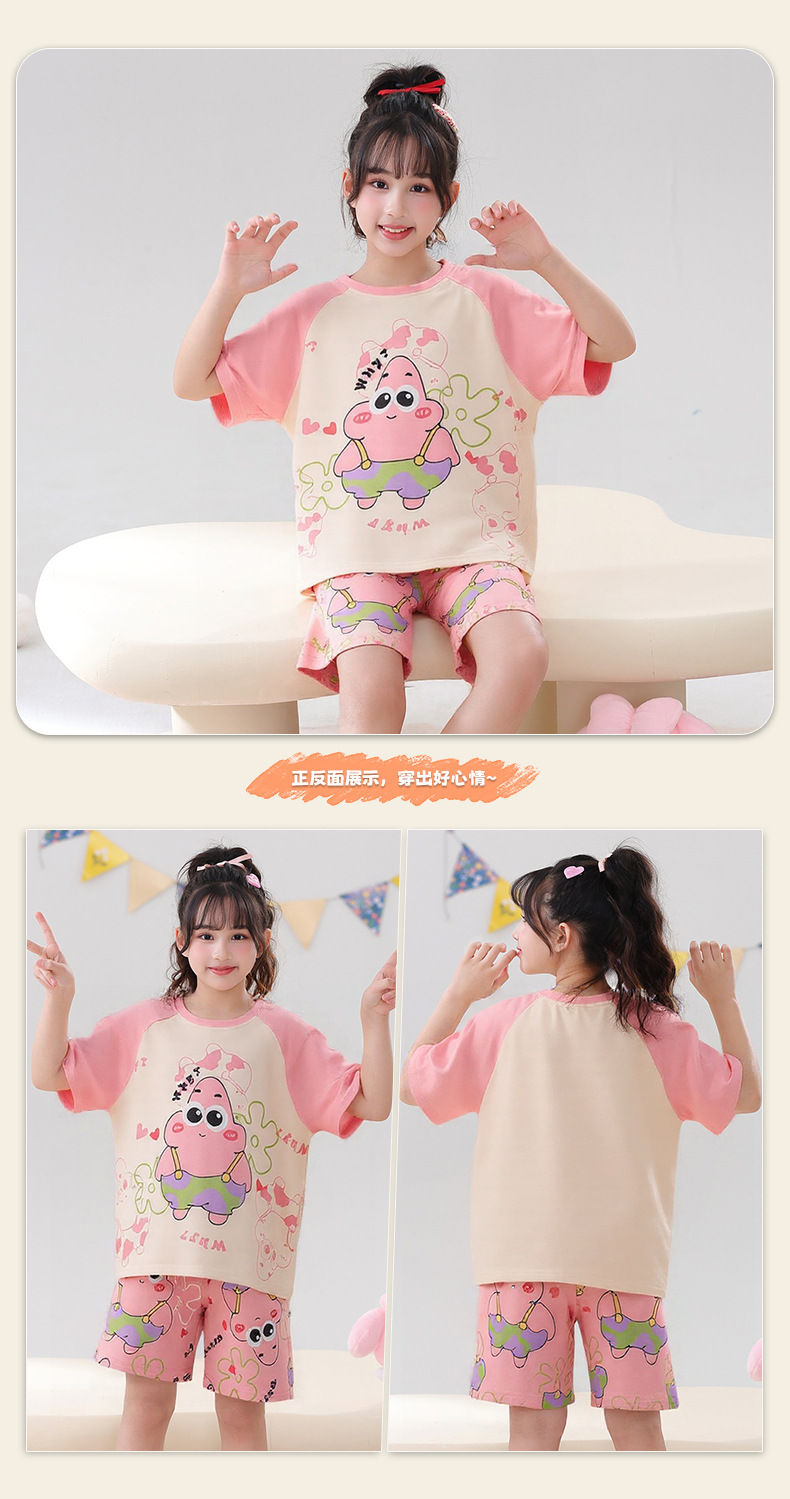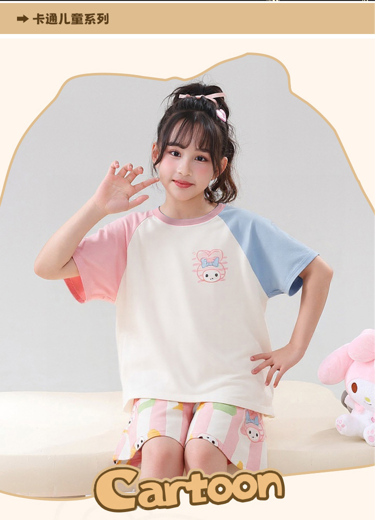 어린이 잠옷 여름 얇은 반팔 소녀 여름 2025 새로운 스타일 만화 어린 소녀 가정 의류 여름스토어 가기