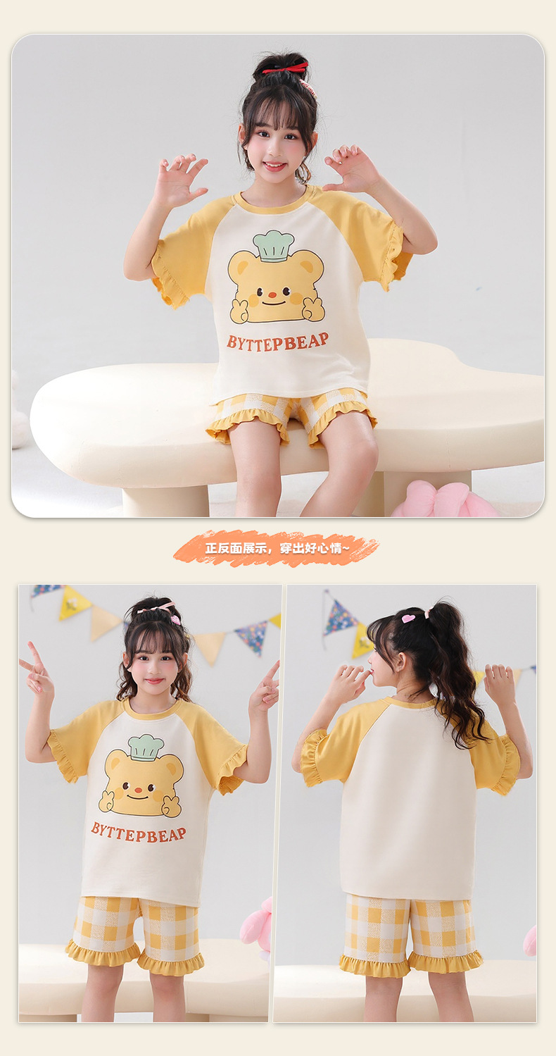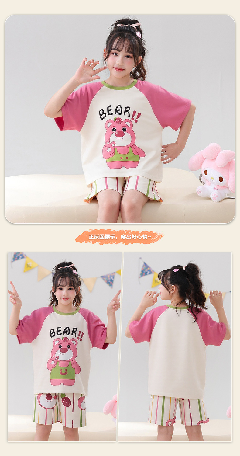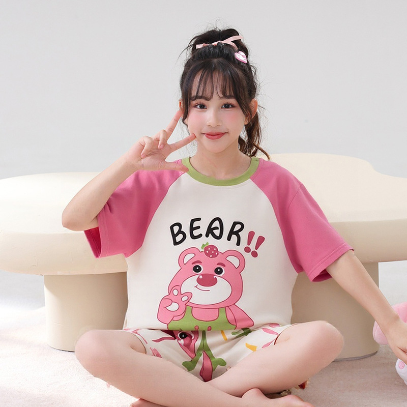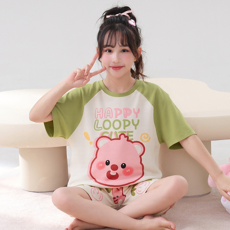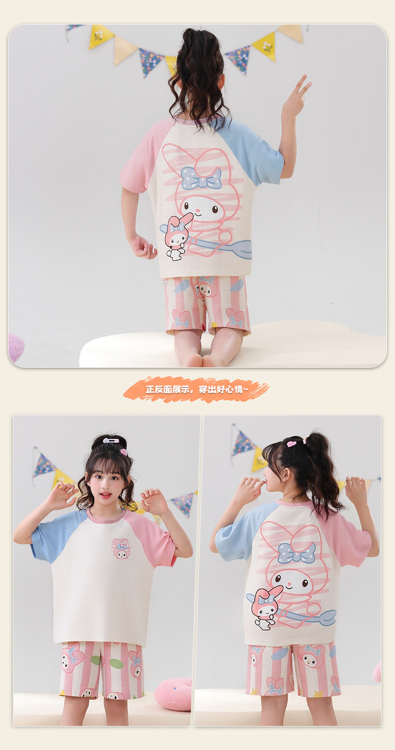어린이 잠옷 여름 얇은 반팔 소녀 여름 2025 새로운 스타일 만화 어린 소녀 가정 의류 여름스토어 가기