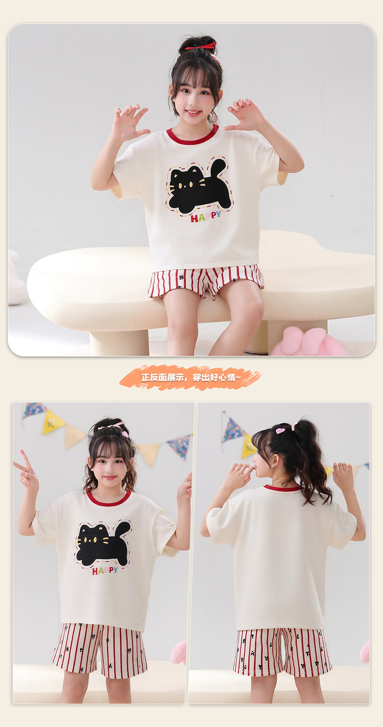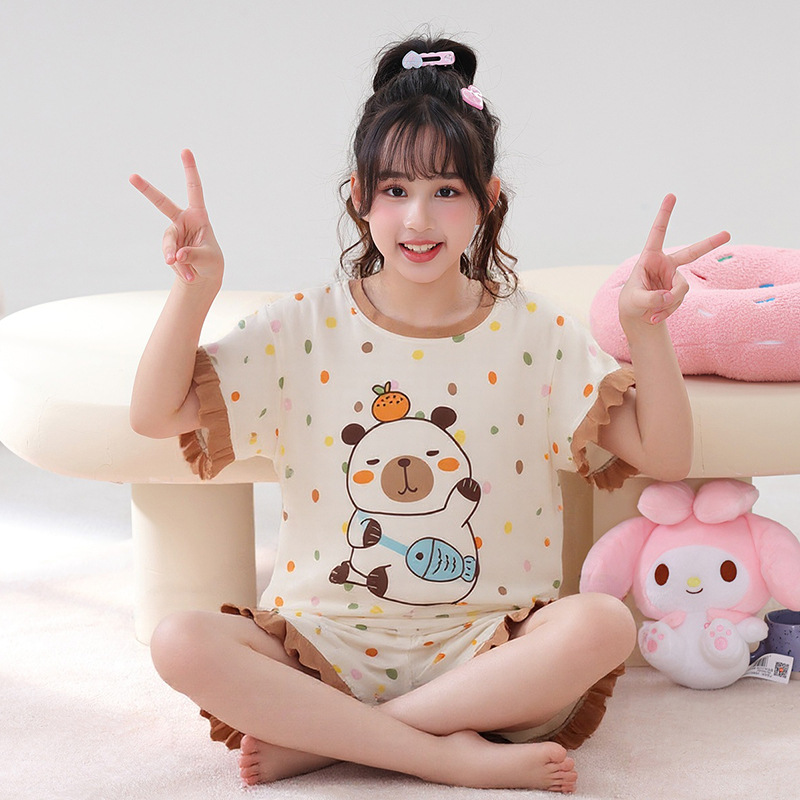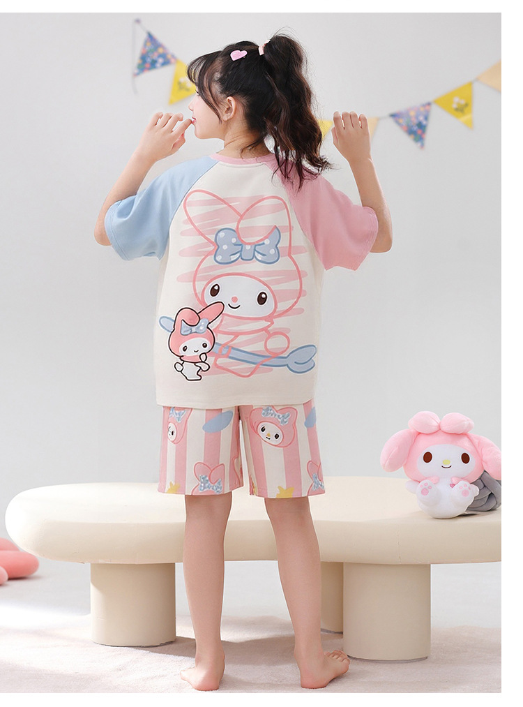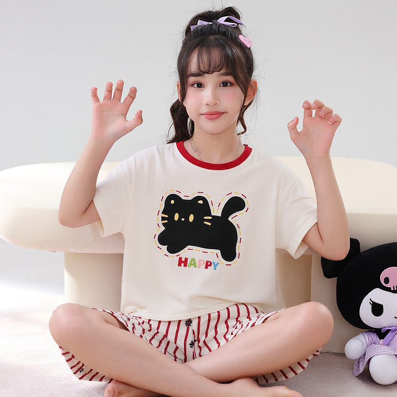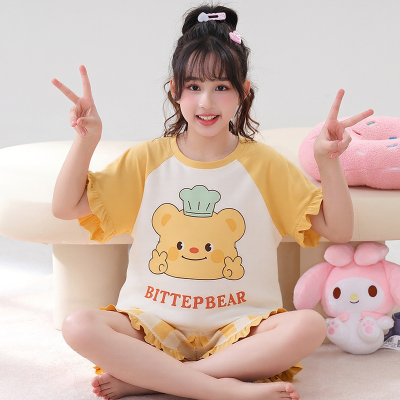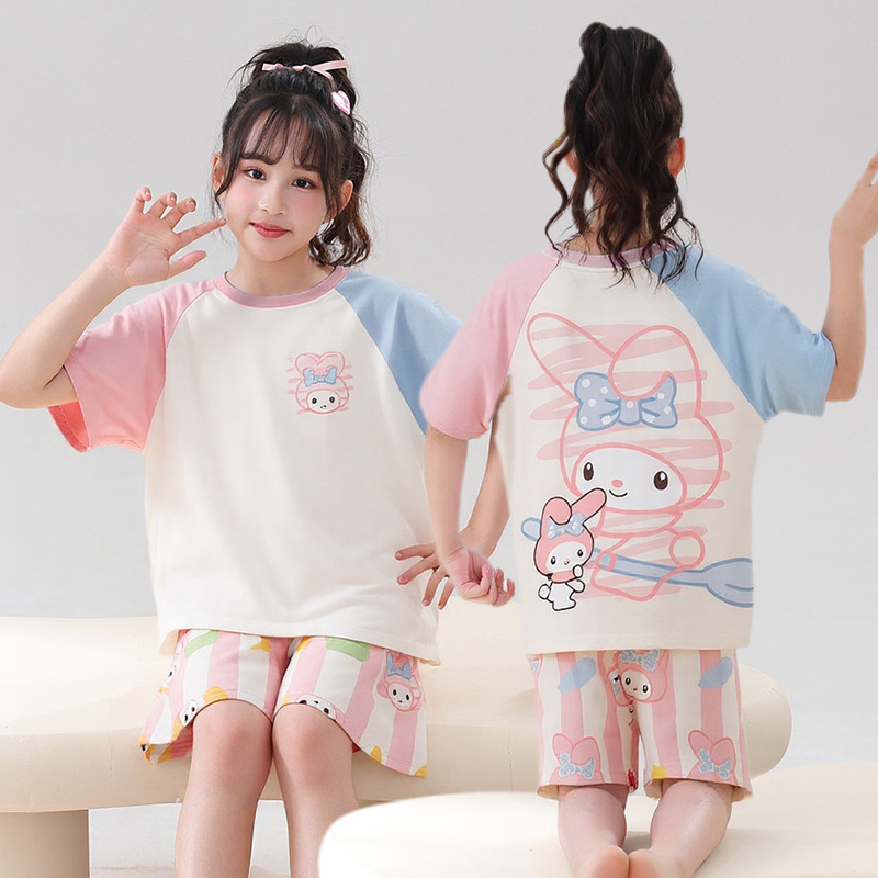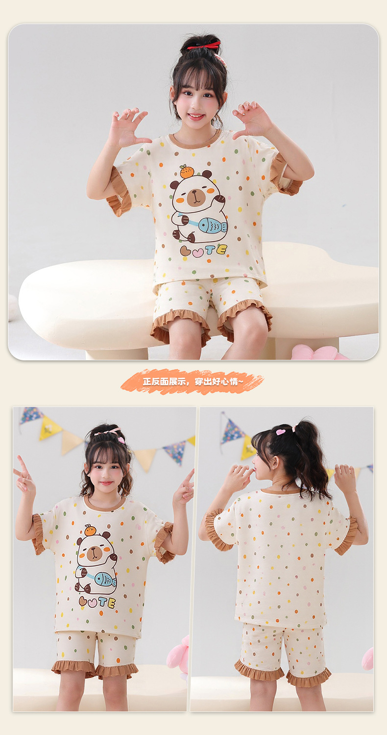 어린이 잠옷 여름 얇은 반팔 소녀 여름 2025 새로운 스타일 만화 어린 소녀 가정 의류 여름스토어 가기