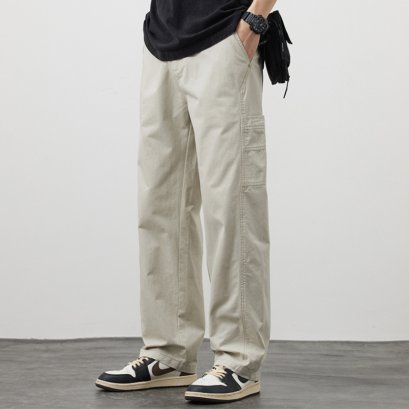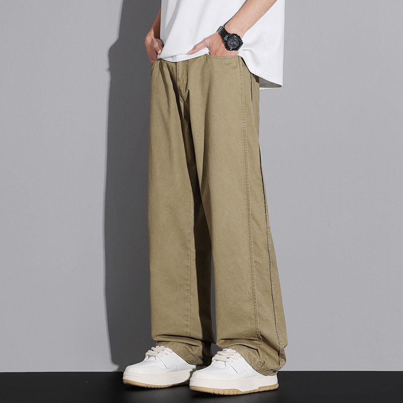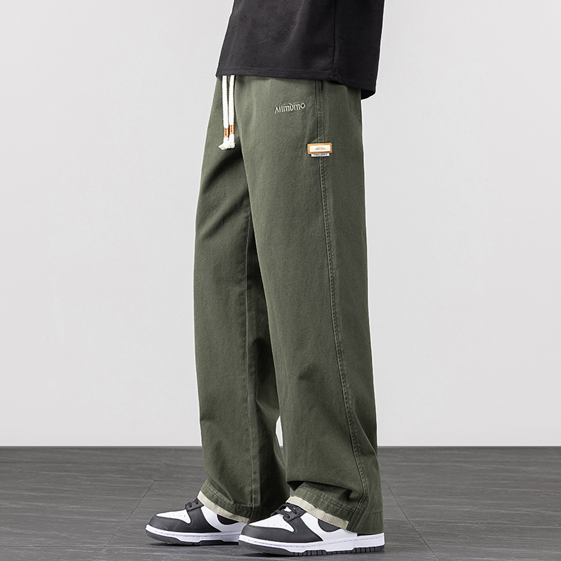 미국산 순면 캐주얼 바지 남성용 트렌디 신상 루즈핏 드레이프 와이드 레그 멋진 스트레이트 스포츠 롱 팬츠스토어 가기